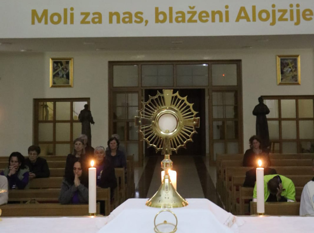 Puna četiri sata vjernici su slavili Boga pred izloženim Presvetim Oltarskim Sakramentom predvođeni župnikom fra Bono Kovačevićem i molitvenom zajednicom Blaženi Alojzije Stepinac. Okupljeni su vjernici molili za svoje potrebe i nakane, a na poseban način za svoje pokojne i mir u svijetu uz svijeće upaljene na oltaru za nastradale u ratnim sukobima. Sviranje i pjevanje predvodila je Anđela Oršolić, a bdijenje je završeno blagoslovom Presvetim Oltarskim Sakramentom.