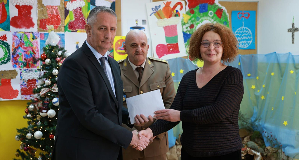 U petak, 19. prosinca prikupljena sredstva uručena su Osnovnoj školi za djecu s poteškoćama u razvoju u Mostaru, koju su tom prigodom posjetili zamjenik ministra obrane BiH Slaven Galić i general-bojnik Zdravko Rezo. Donaciju je primila ravnateljica Maja Mustapić.