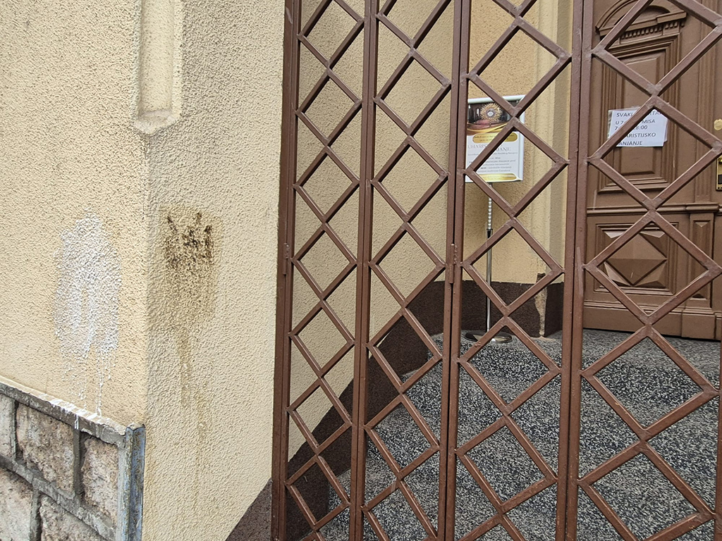 Za sada nepoznati počinitelj je na pročelju samostanske crkve Sv. Vinka, sestara milosrdnica, koja se nalazi u srcu Sarajeva, uz središnju prometnicu kojom prolazi i tramvaj, izmetom namazao zid.