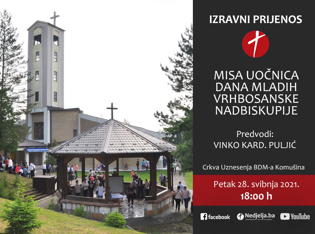 U petak i subotu, 28. i 29. svibnja kada se na razini Vrhbosanske nadbiskupije obilježava Dan mladih na našem YouTube te Facebookkanalu možete izravno pratiti izravni prijenos misa iz župne crkve i s brda Kondžilo te emisije i klanjanje Presvetom Oltarskom Sakramentu.