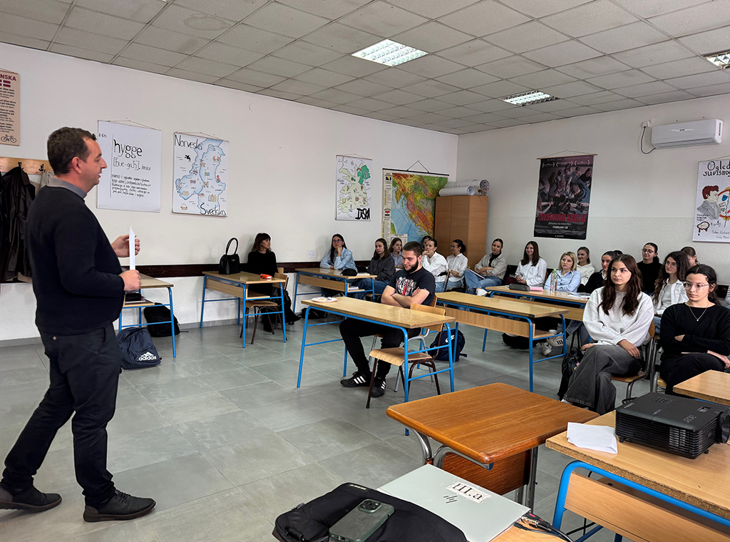 Gost predavač bio je vlč. dr. sc. Branko Jurić, ravnatelj Katoličkog školskog centra Sveti Franjo u Tuzli i profesor moralne teologije na Sveučilištu u Mostaru. Predavanju su nazočili učenici 3. i 4. razreda opće gimnazije, a tema predavanja, a poslije i rasprave, bila je Između slobode i manipulacije – demokracija pod pritiskom populizma.
