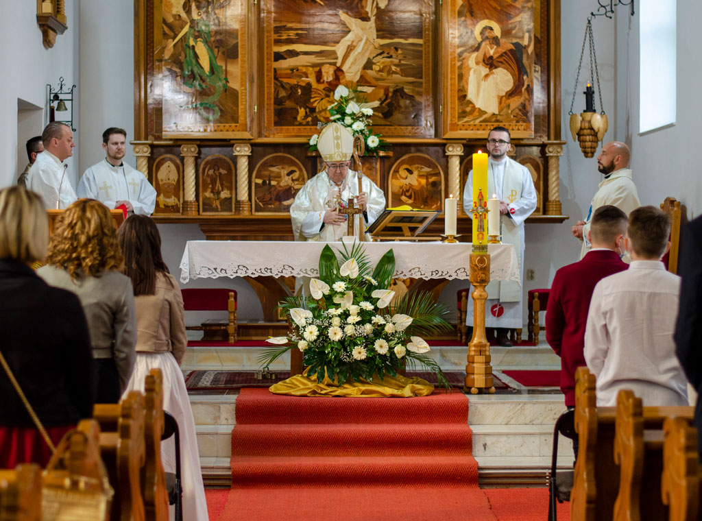 Vrhbosanski nadbiskup Vinko kard. Puljić u poslijepodnevnim satima u subotu, 10. travnja u župi Uznesenja Blažene Djevice Marije u sarajevskom prigradskom naselju Stup podijelio je sakrament potvrde za 18 krizmanika/-ca.