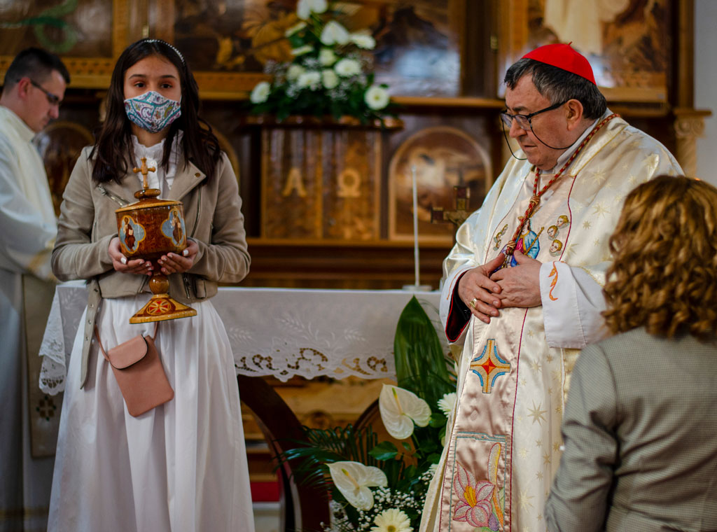 Poslije propovijedi uslijedio je obred odreknuća sotone i ispovijest vjere nakon čega je kardinal Puljić podijelio sakrament potvrde.