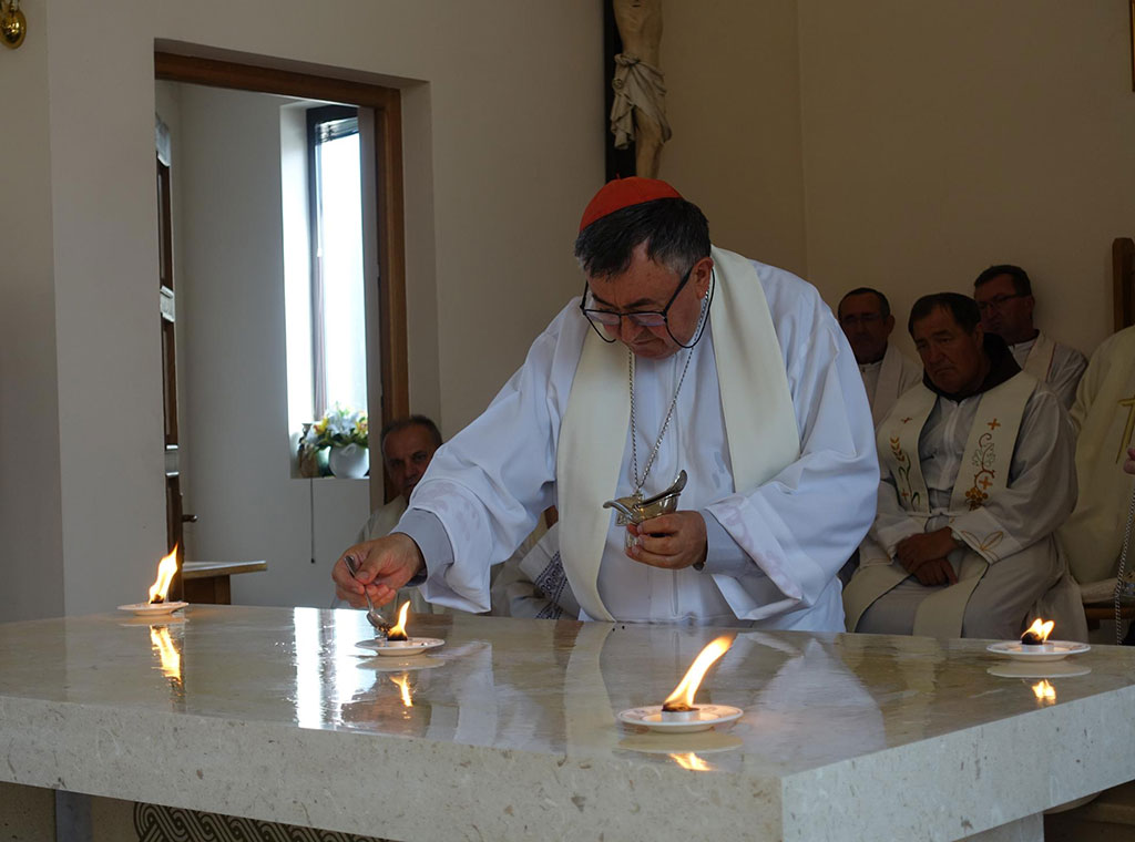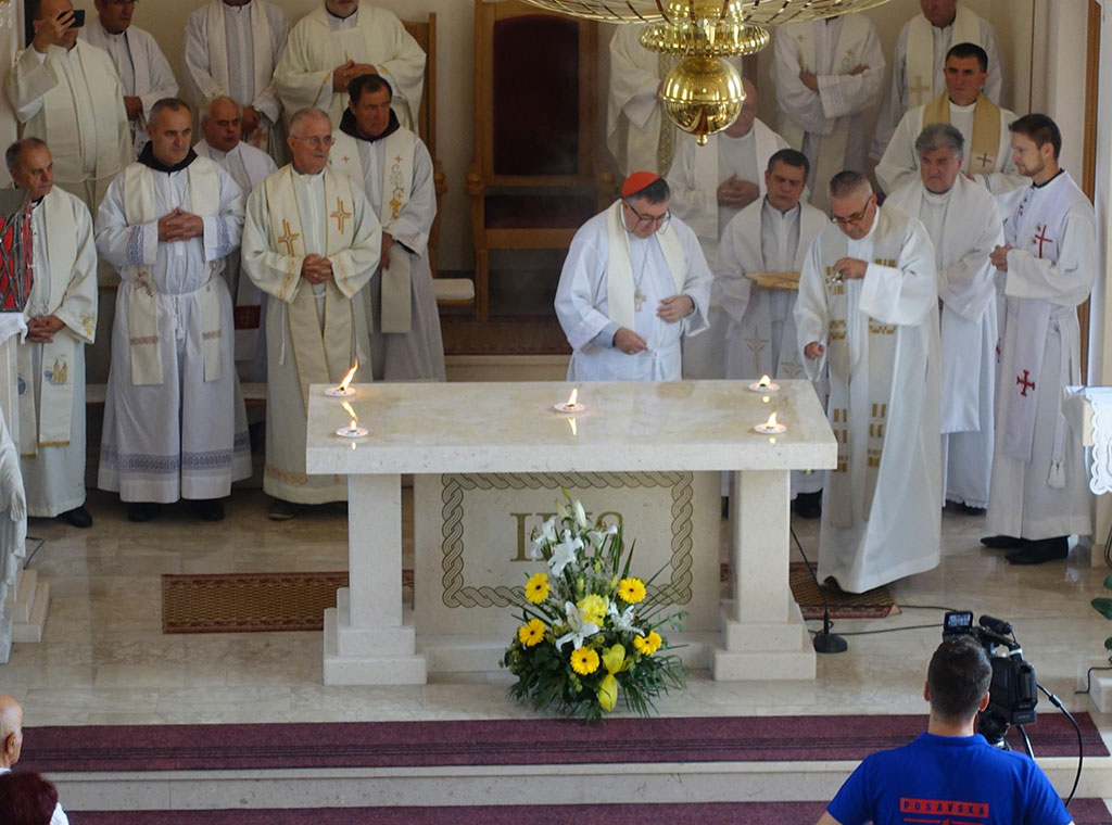 „Tako će istim krizmenim uljem ovaj oltar biti pomazan kao središte događanja u crkvi. Tu će se obnavljati Kristova žrtva. Zato je oltar simbolika Isusa Krista. Taj oltar zato ljubi svećenik prije početka Svete mise“, rekao je kardinal ističući da oltar označava Krista koji je žrtva i žrtvenik. Također je pojasnio da će prigodom čina posvete na oltaru zapaliti pet svijeća u čast pet rana Kristovih koje su znak smrti Isusa Krista koja je cijena čovjekova spasenja. Napomenuo je i da će pomazati četiri križa na zidovima crkve koji označavaju četvoricu evanđelista, a ti evanđelisti naviještaju Isusa Krista. Spomenuo je da će biskupi Biskupske konferencije Bosne i Hercegovine uskoro proglasiti Godinu Božje riječi ističući važnost poznavanja riječi Isusa Krista i poruke Božje.