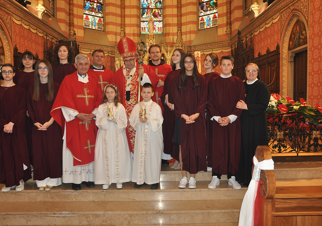 Nakon svete mise, fotografiranja i čestitanja, u katedralnom župnom uredu podijeljene su prigodne uspomene krizmanicima i prvopričesnicima.