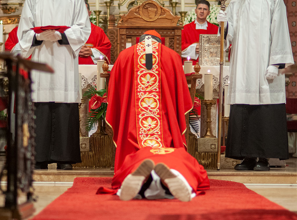 Zbog aktualne pandemije koronavirusa drugi svećenici nisu polagali ruku na glavu ređenika kao znak zajedništva. Pošto je izmolio molitvu ređenja, kardinal Puljić pomazao je svetim uljem dlanove ređenika i predao mu hostije i kalež te stiskom ruke dao znak mira. Potom je uslijedila euharistijska služba, a novozaređeni svećenk zauzeo je mjesto za oltarom pokraj kardinala Puljića na slavlju svoje prve svete mise.