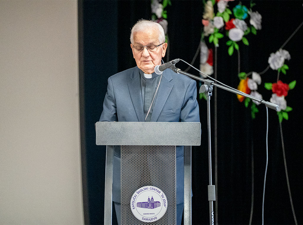 "U 1992. s obzirom na žurnu potrebu obrazovanja kvalificiranog kadra za zvanje nastavnika i profesora vjeronauka mi smo u našoj Vrhbosanskoj metropoliji (Sarajevo, Mostar, Banja Luka) imali oko 300 studenata – vjernika laika, koji su bili upisani na jedan od katoličkih učilišta, pripremajući se za ovu odgovornu službu", posvijestio je te potom progovorio o školskom vjeronauku u službi evangelizacije u kontekstu postsinodalnoj pobudnici Catechesi tradendae Sv. Ivana Pavla II, iz 1979. na temu kateheza u suvremenom svijetu. Istaknuo je kako su, s obzirom na praktične poteškoće naglašena obilježja školske vjeronaučne poduke: to mora biti sistematska obuka, ponuđena ne improvizirajući nego po određenom programu, tako da može postići jedan jasan cilj, koja se neće zaustaviti tek kod početnog naviještanja kršćanskih otajstava.