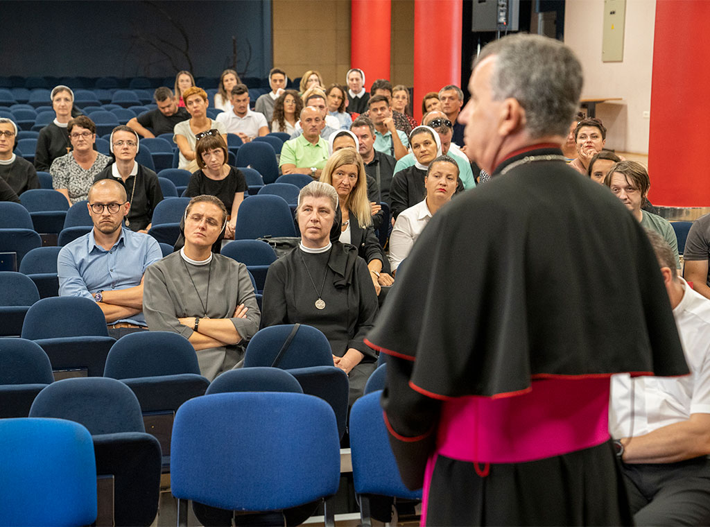 "Od samog početka vjeronaučne obuke u školama mi smo biskupi, ali i svi drugi, kojih se to tiče, kad je u pitanju vjeronaučna obuka u školi, znali dobro kako je važno paziti na kvalificiranu izobrazbu vjeroučitelja. Crkvenim zakonom predviđen i zato nužno potreban mandat (poslanje) kojega svakom vjeroučitelju daje ordinarij za područje svoje biskupije, ne može niti smije biti samo puka formalnost", kazao je te se na kraju obratio vjeroučiteljima naglašavajući kako je svjedočenje osobne vjere trebalo postati i sadržaj njihova zvanja. Podcrtao je kako vjera traži, osim znanja, također i življenje. Na kraju se zahvalio svim vjeroučiteljima na njihovu poslanju te približavanju Krista mladima.