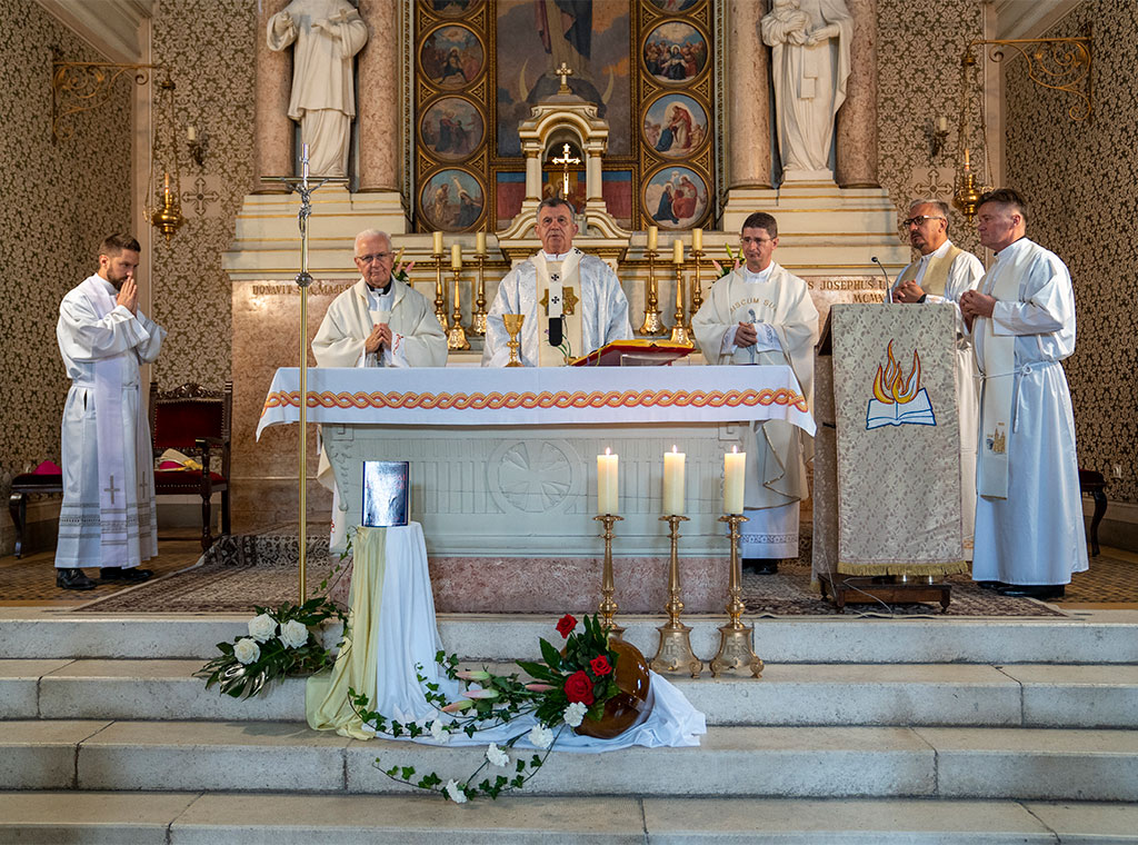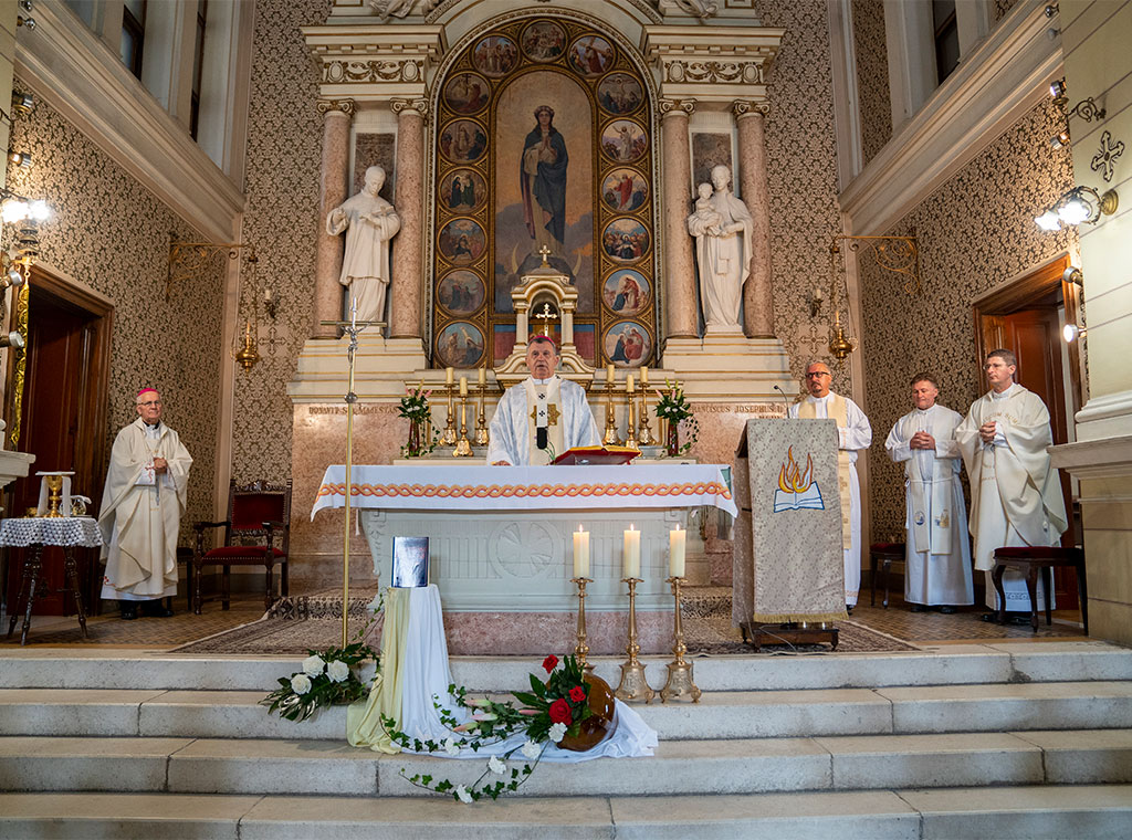 Euharistiju je predslavio mons. Vukšić u zajedništvu biskupa Komarice te koncelebraciju desetak svećenika među kojima je bio generalni vikar VN-a mons. Slađan Ćosić i ravnatelji KŠC-ova i svećenici koji djeluju u školama.