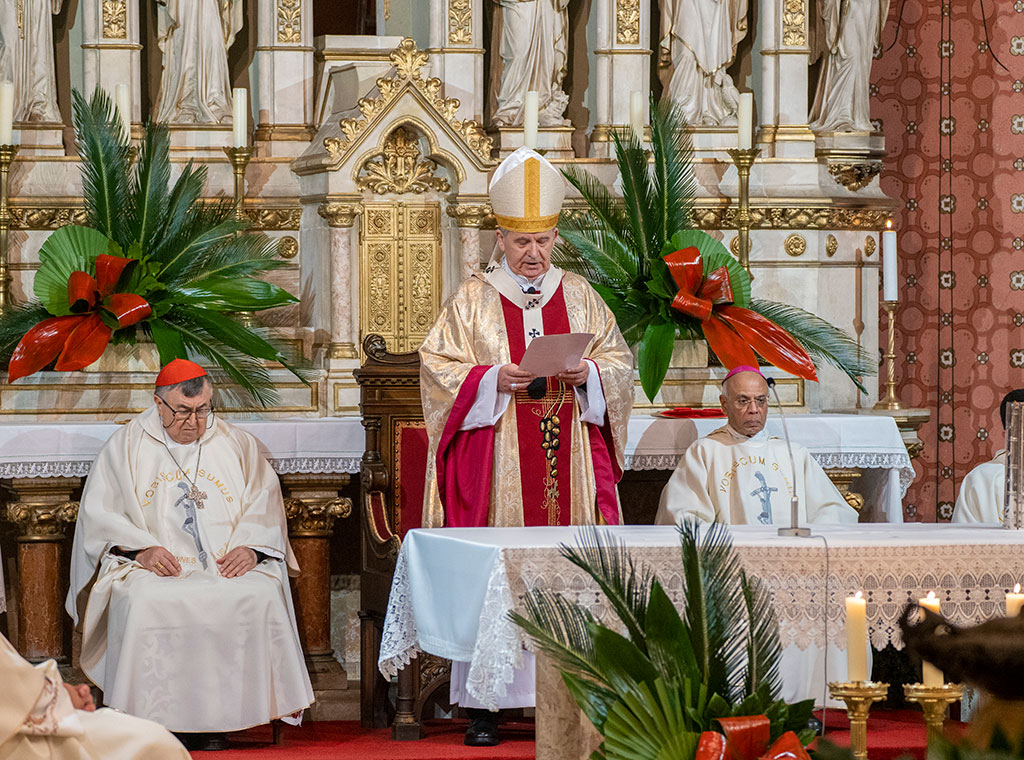 Na početku misnoga slavlja mons. Vukšić pozdravio je nazočne, na osobit način kardinala Vinka i nadbiskupa Chullikata te potaknuo vjernike na molitvu za svećenike kako bi im uvijek mogli posluživati Isusovu prisutnost, njega samoga. “Najljepše u našoj službi je biti posrednik Božjega milosrđa. To je služba iznad koje sigurno nema veće časti. I najlošije što se svećeniku može dogoditi, jest da bude, ne daj Bože, zapreka dolasku Božje milosti u duše i živote u zajednici izabranog narodu. I večeras, dok zahvaljujemo Gospodinu za dar njegove prisutnosti, molimo ga da nam oprosti sve slabosti - i nama, prezbiterima, i vama, Isusovim vjernicima, ako smo nekada bili zapreka dolasku njegovog milosrđa i njegova blagoslova u duše i živote“, kazao je nadbiskup Vukšić.