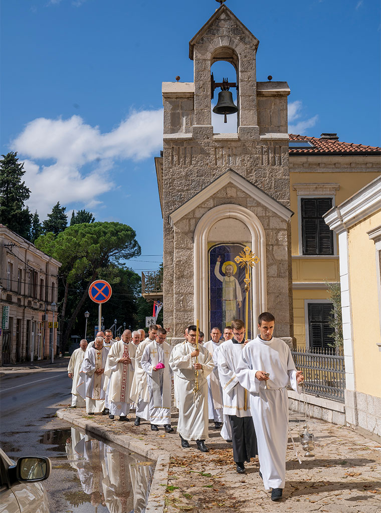 Na kraju propovijedi, zazvao je Božji blagoslov, po zagovoru Sv. Mihovila, na Trebinjsku biskupiju i sve njezine župne zajednice, njezina biskupa, svećenike i vjernike, grad i njegove stanovnike.