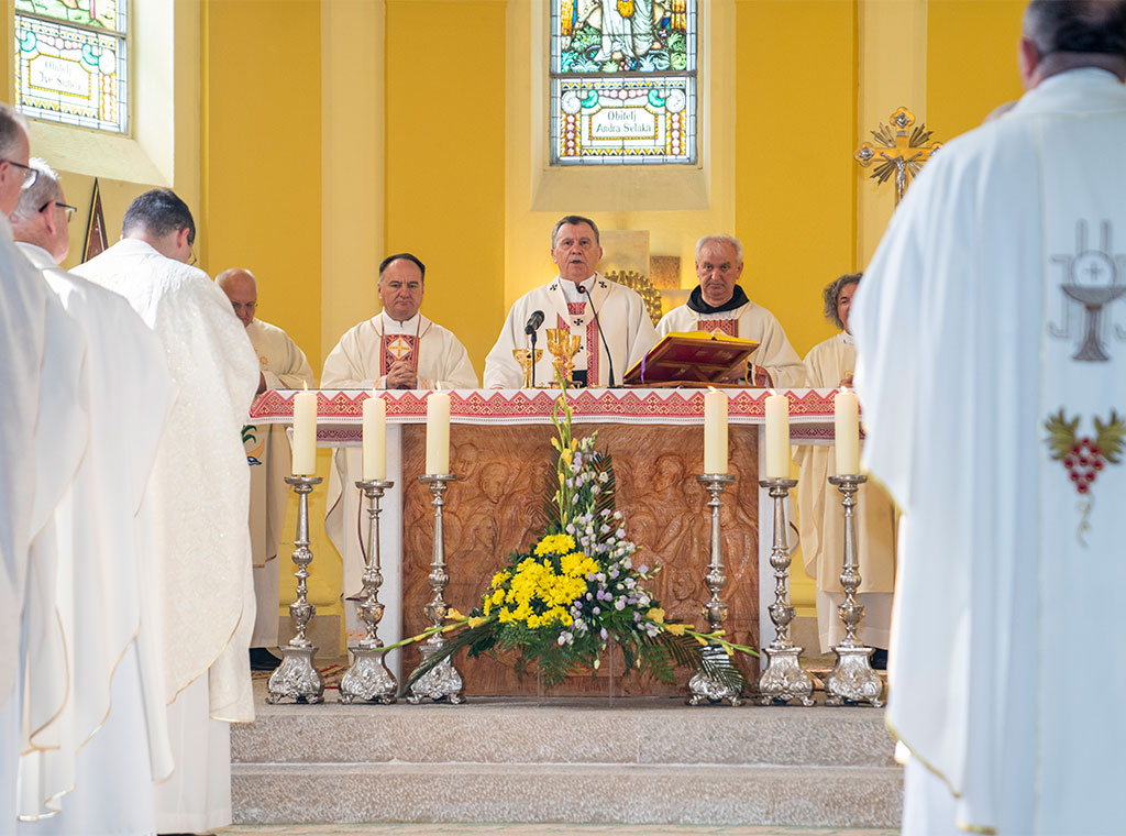 Euharistijsko slavlje predvodio je vrhbosanski nadbiskup metropolita mons. Tomo Vukšić, predsjednik Vijeća za sredstva društvenog priopćivanja BK-a BiH, uz suslavlje mostarsko-duvanjskog biskupa i apostolskog upravitelja trebinjsko-mrkanskog mons. Petra Palića, provincijala Hercegovačke franjevačke provincije fra Joze Grbeša, župnika i biskupskog vikara za ovu hercegovačku biskupiju don Ante Luburića i još 20-ak svećenika.
