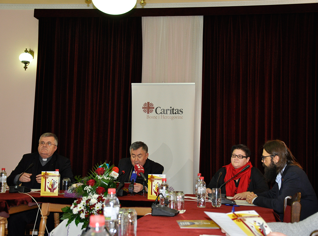 Medijskim djelatnicima obratili su se predsjednik Caritasa BiH, vrhbosanski nadbiskup metropolit Vinko kard. Puljić; ravnatelj Caritasa BiH mons. Tomo Knežević; koordinatorica Caritasovog projekta o migrantima Dijana Muzička i koordinator više Caritasovih projekata Miroslav Valenta, koji je i animirao konferenciju.