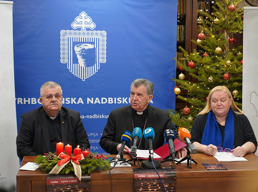 Najprije se nazočnima obratio predsjednik Caritasa BiH vrhbosanski nadbiskup metropolita mons. Tomo Vukšić koji je u izlaganju za središte imao svoju poruku povodom Nedjelje Caritasa u BiH naslovljenu Neka svijetle vaša dobra djela pred ljudima i slave Oca nebeskoga. Na početku je podsjetio kako se već 27 godina na Treću nedjelju došašća, na razini Biskupske konferencije Bosne i Hercegovine, obilježava Nedjelja Caritasa. Napomenuo je i kako je to prigoda djelovanje Caritasa predstaviti široj javnosti, crkvenoj i društvenoj, te zahvaliti plemenitim ljudima za njihovu dosadašnju dobrotu i potaknuti njih i sve ostale da plemenito djelo pomaganja nastave i ubuduće. Također je podsjetio na ovogodišnje geslo Caritasa koje glasi: Caritas: svjetlo u tami!