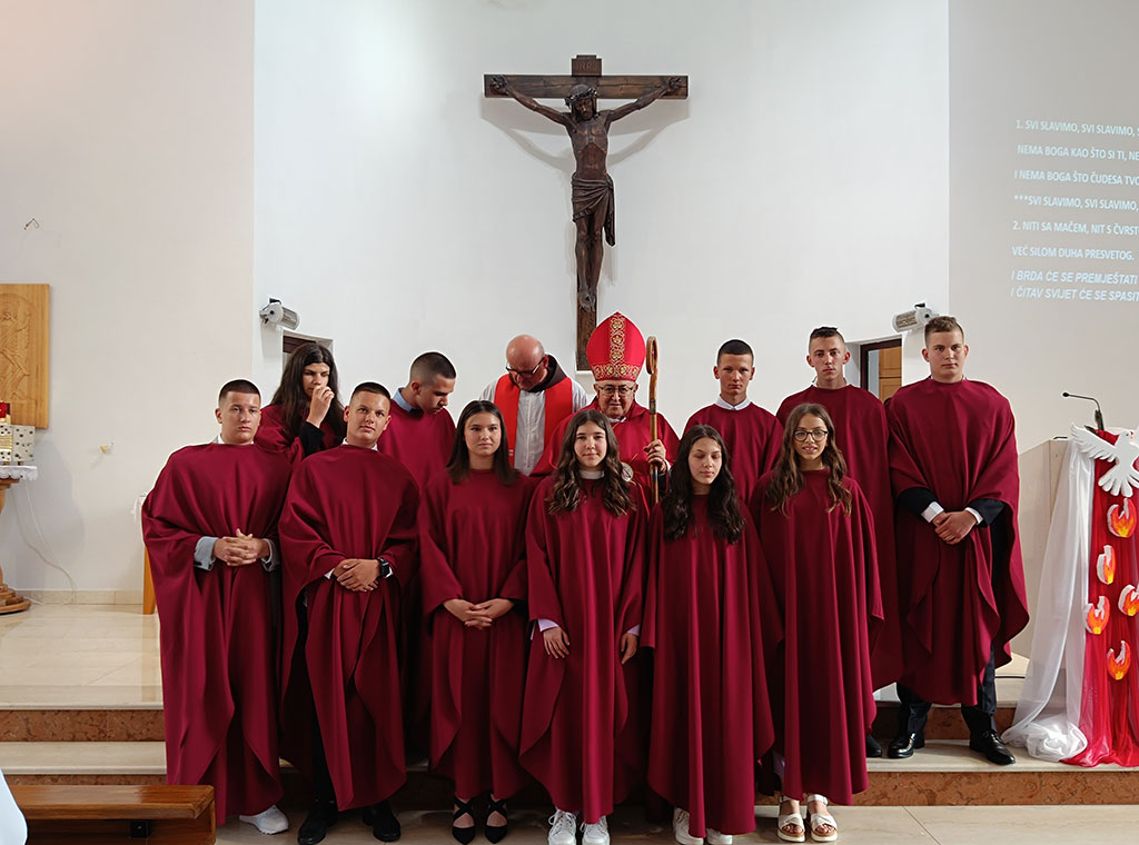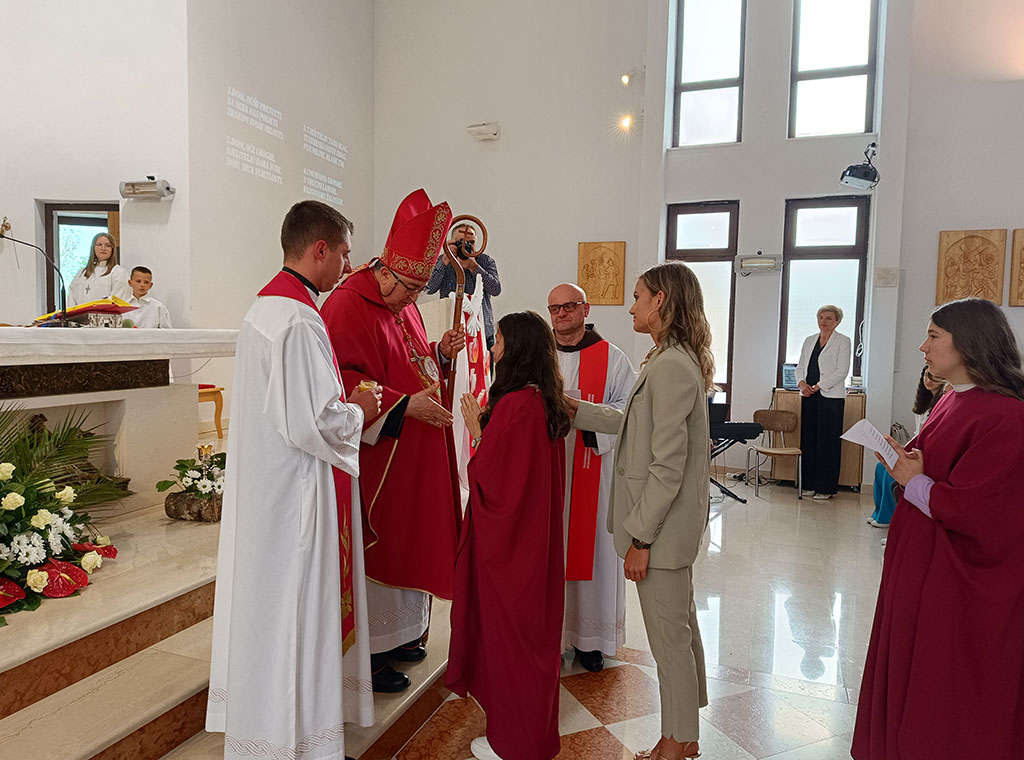 Nakon svečanog dočeka kardinala, prije početka mise on je ispitao vjeronaučno znanje 11 ovogodišnjih krizmanika.
