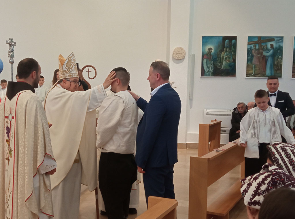 "Vi znate što znači potvrda, bez pečata ne vrijedi. Tako se i ovaj sakrament zove potvrda - utiskuje se pečat, a to je da ste Kristovi i trebate znati da ste Kristovi. S pravom ste me pitali kako u ovim vremenima biti vjeran, ustrajati. Vrlo je važno koje će sjeme pasti u vaše srce. Božja riječ je sjeme i tko nije susreo Božju riječ neće ni Isusa susresti. Isus je u svojoj riječi. Nekima đavao odmah zgrabi, nekima nema korijenja pa se osuši, nekima ovozemaljska trka za užitkom uguši sjeme; tek četvrtome donese plod u plemenitu i dobru srcu. To je plod Duha Svetoga koji naše srce odgaja u plemenitosti i dobroti. Ne moramo se mi izjednačiti s masom, mi se izjednačavamo s Isusom Kristom. Zato vas danas Duh Sveti potvrđuje da budete prepoznatljivi da ste Kristovi, da ste Crkva, da imate korijenje koje se ne može iščupati tako lako", rekao je propovjednik.
