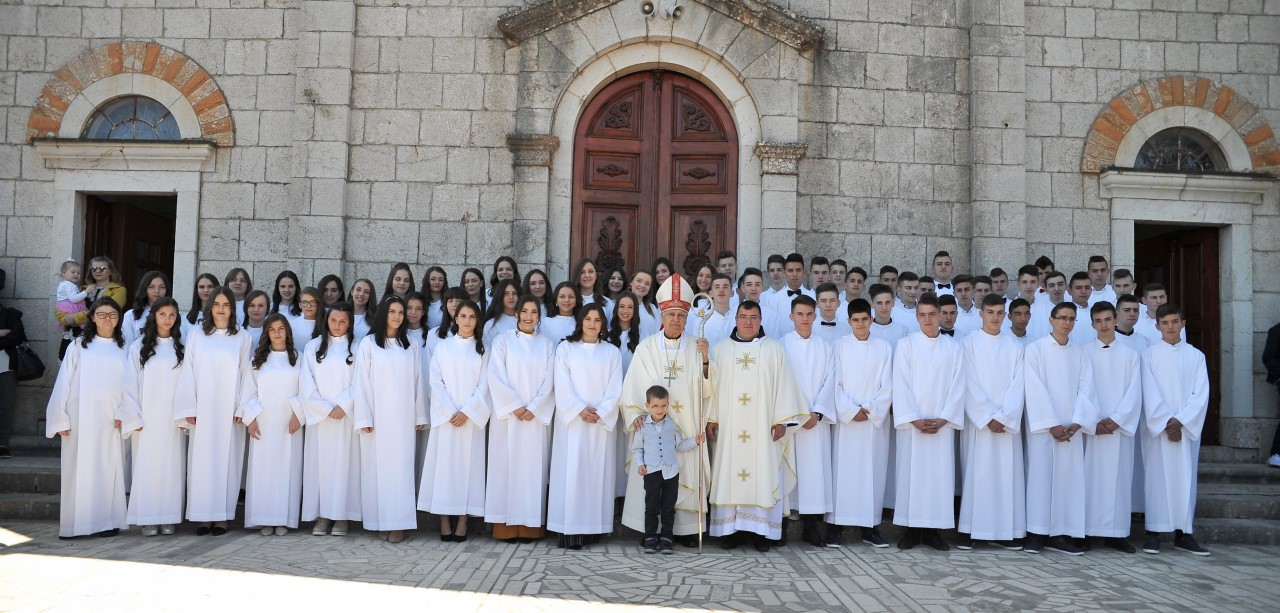 Na vazmenu subotu, 7. travnja, uoči Maloga Uskrsa, biskup Ratko Perić krizmao je 67 mladih u župi Drinovci