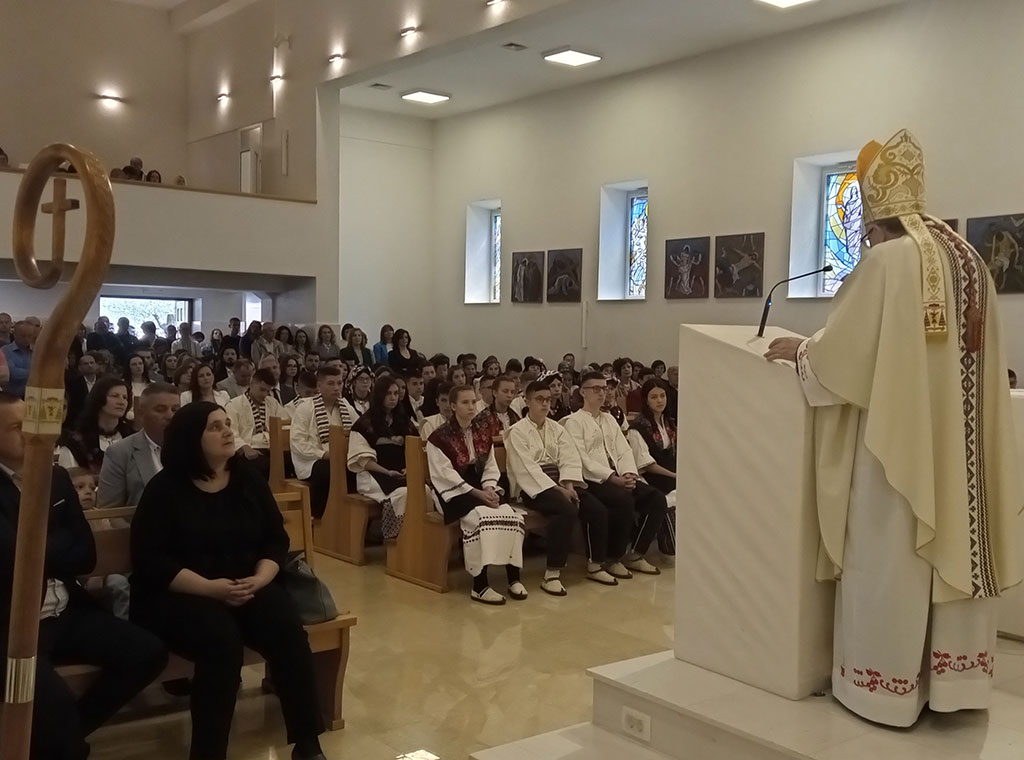 Obratio se zatim i roditeljima osnažujući ih neka se "ne daju zavesti ni od medija, politike ni od svjetskih interesa kojima je važno uživati i potrošiti. Nije bogat tko puno ima, nego onaj tko je s malo zadovoljan. Zato vas pozivam pokušajte biti ustrajni svjedoci svojoj djeci vjerom. I smrću roditelj ne prestaje biti roditelj, to znaju oni čiji su roditelji umrli, a koji se često sjete onoga što su im govorili. Hrabrim vas u toj roditeljskoj dužnosti".