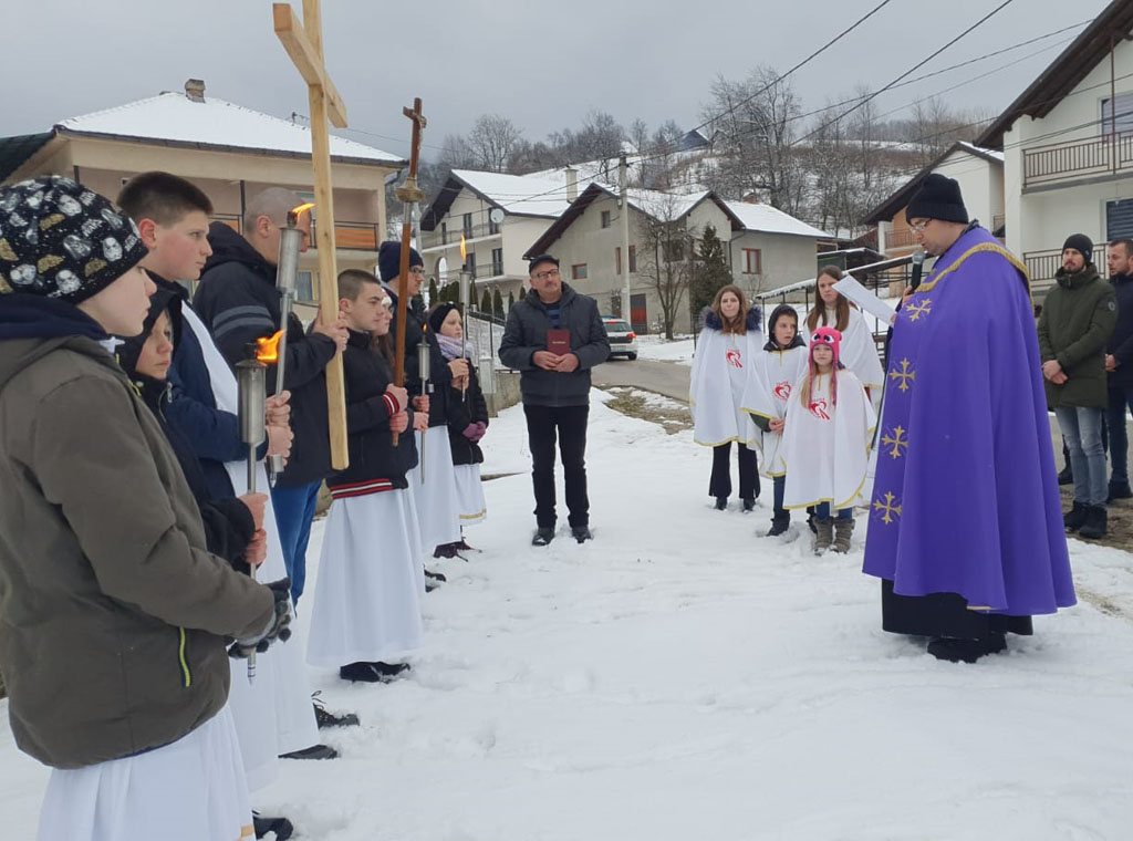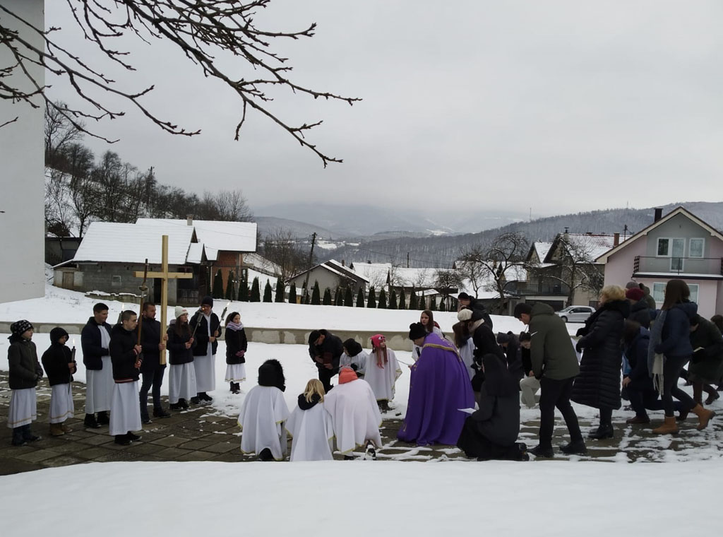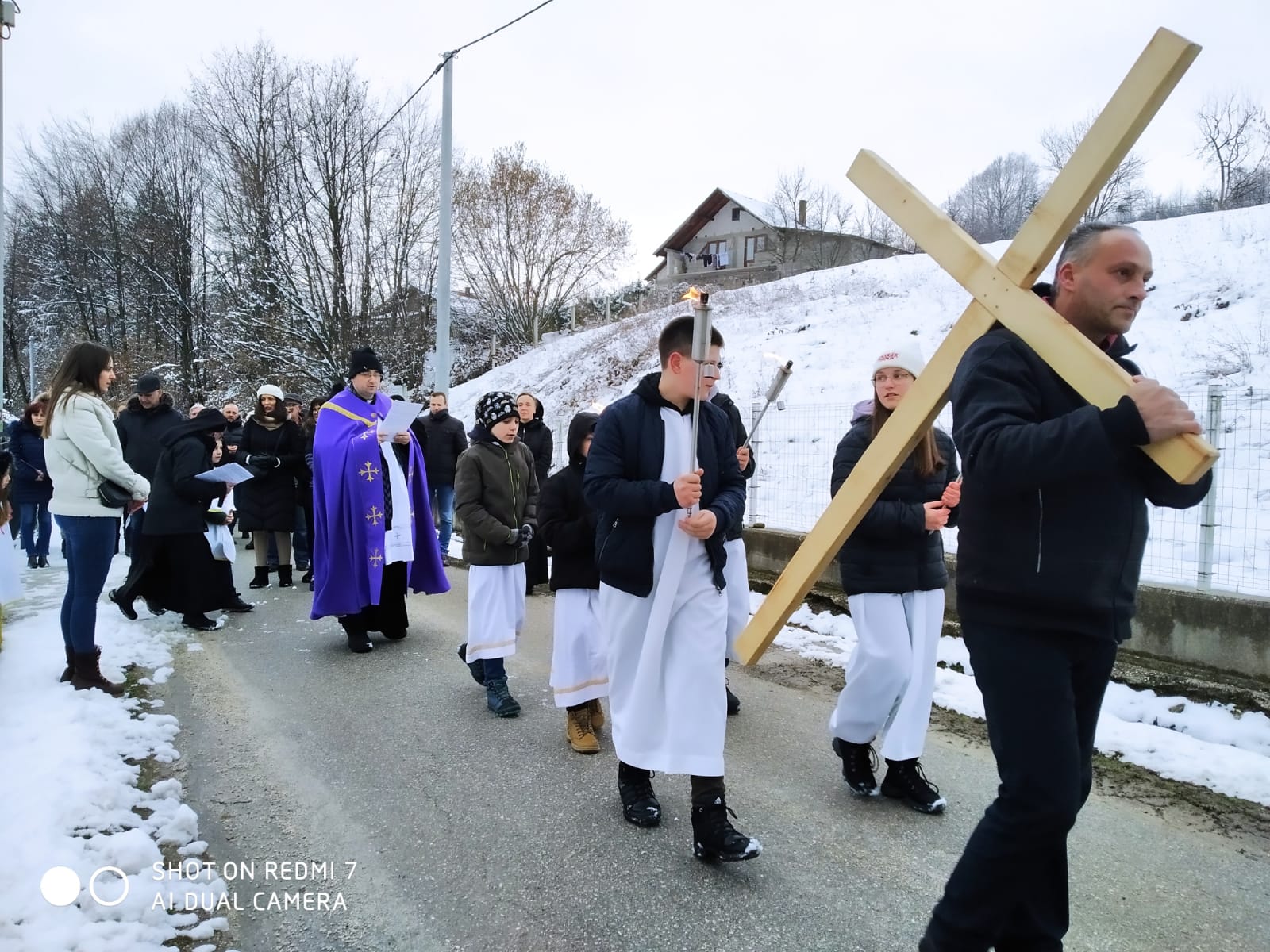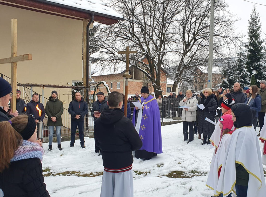 Premda je bilo hladno i snježno, u molitvi i pobožnosti križnog puta okupio se velik broj župljana. Okupljanje i početak bio je ispred kapele Gospe Lurdske. Molio se križni put uz pjevanje korizmenih pjesama te krunicu Božjega milosrđa. Predmolitelji na postajama uz župnika vlč. Marka Majstorovića bili su djeca, mladi i ostali vjernici, a pjevanje je predvodio župni zbor i dječiji zbor Zrakice.