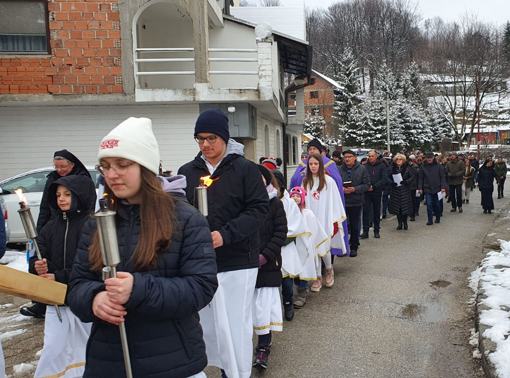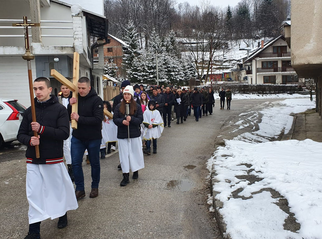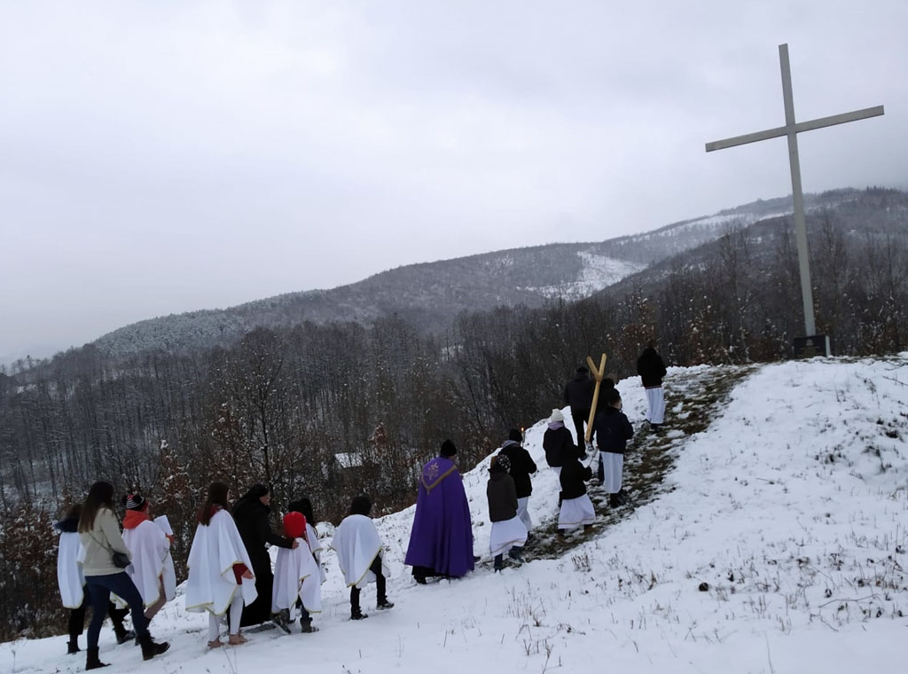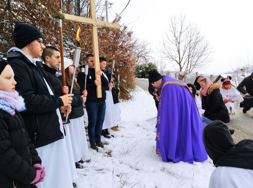 Premda je bilo hladno i snježno, u molitvi i pobožnosti križnog puta okupio se velik broj župljana. Okupljanje i početak bio je ispred kapele Gospe Lurdske. Molio se križni put uz pjevanje korizmenih pjesama te krunicu Božjega milosrđa. Predmolitelji na postajama uz župnika vlč. Marka Majstorovića bili su djeca, mladi i ostali vjernici, a pjevanje je predvodio župni zbor i dječiji zbor Zrakice.