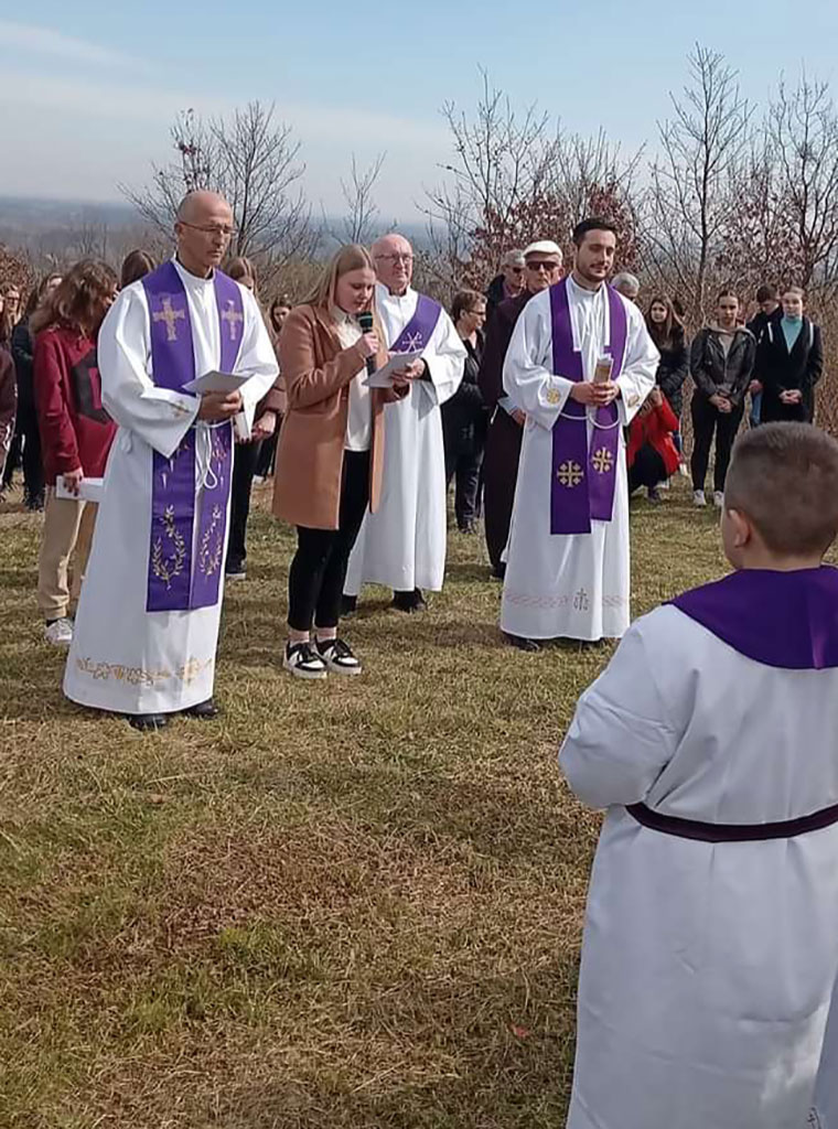 Tekstove uz križni put, koje je pripremio Nadbiskupijski centar za pastoral mladih Ivan Pavao II., čitali su krizmanici i preč. Tomašević. Mladi su nosili i križ, svijeće, zastavu, te pomagali što je bilo potrebno kod organizacije susreta. Pjevanje je animarala s. Agnieszka Chwalinska sa susestrama iz zajednice sestara Franjevki Marijinih misionarki iz Odžaka u zajedništvu s pjevačima iz Potočana, Odžaka, Svilaja, Balegovca, Posavske Mahale…