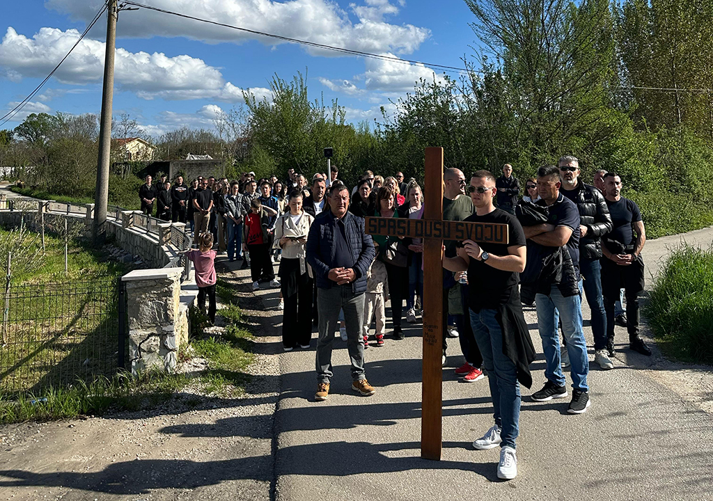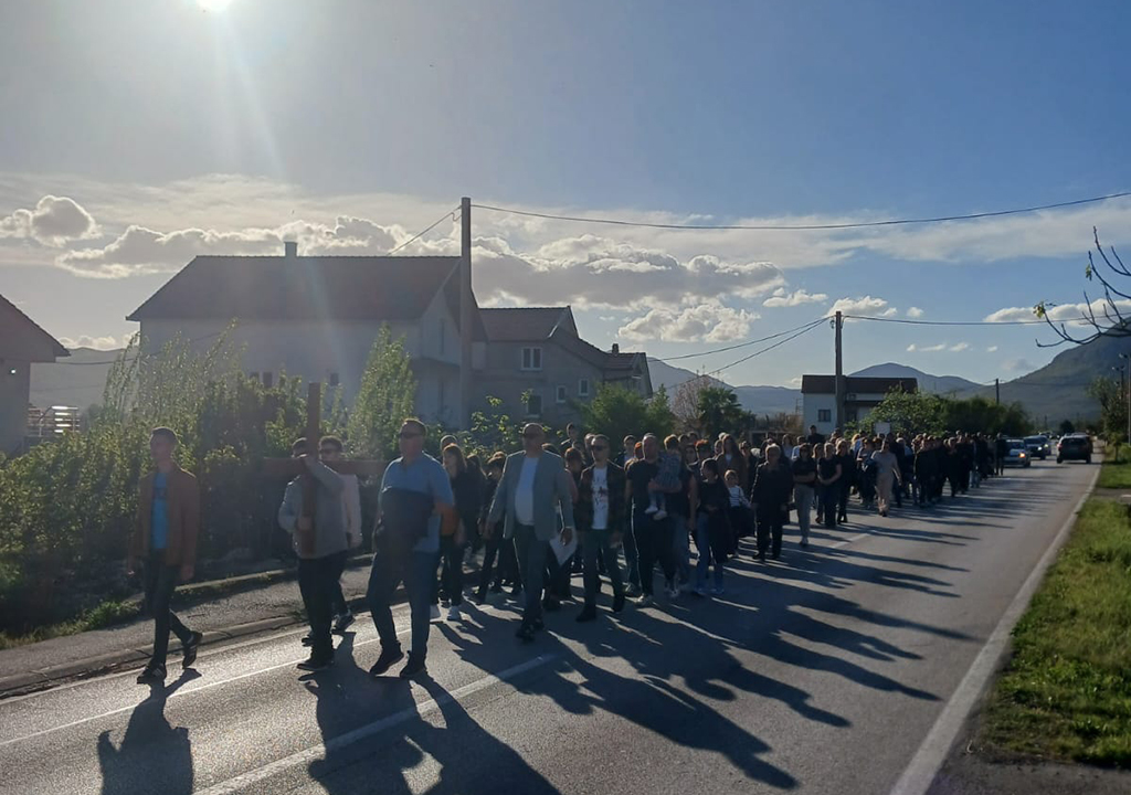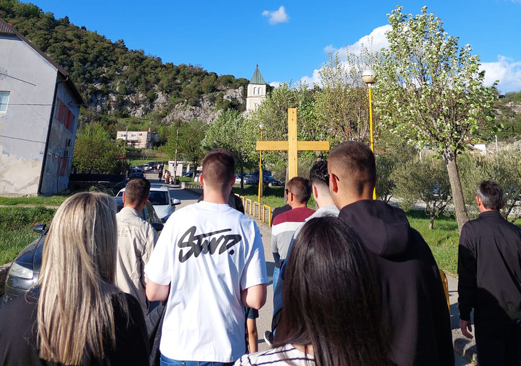 Uz molitvu kod svake postaje, okupljeni su pjevali i Gospin plač, izražavajući tako suosjećanje s Isusovom mukom. Dolaskom pred crkvu, sva četiri križa bila su postavljena na ulazu, nakon čega je župnik fra Stanko Mabić okupljenima uputio prigodnu riječ i započeo obrede Velikog petka.