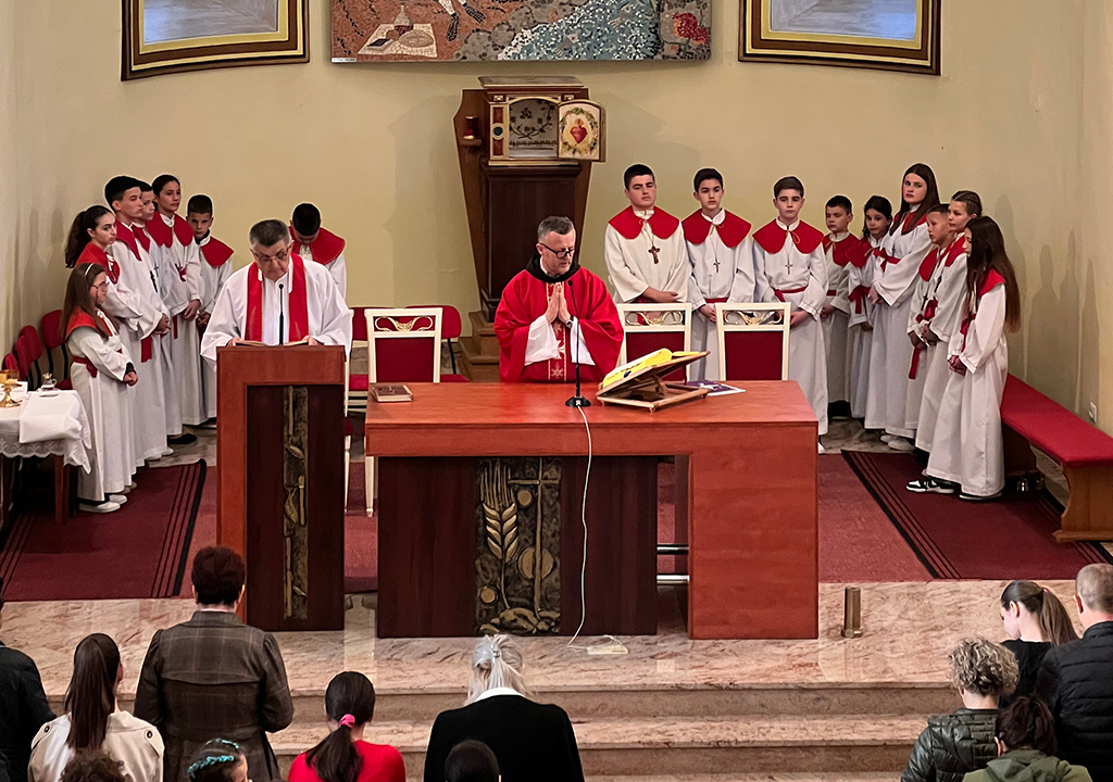 Obrede su predvodili fra Stanko Mabić i fra Ivan Boras, župni vikar, a liturgijsko pjevanje animirao je Veliki župni zbor Sv. Paškala. U kratkoj propovijedi fra Stanko je podijelio dojmljivo svjedočanstvo iz vremena kada je radio s ministrantima na jednoj drugoj župi. Prisjetio se zadatka koji im je dao – da u korizmenom vremenu svatko kaže nešto o jednoj postaji. Maleni Luka dobio je prvu postaju i napisao: