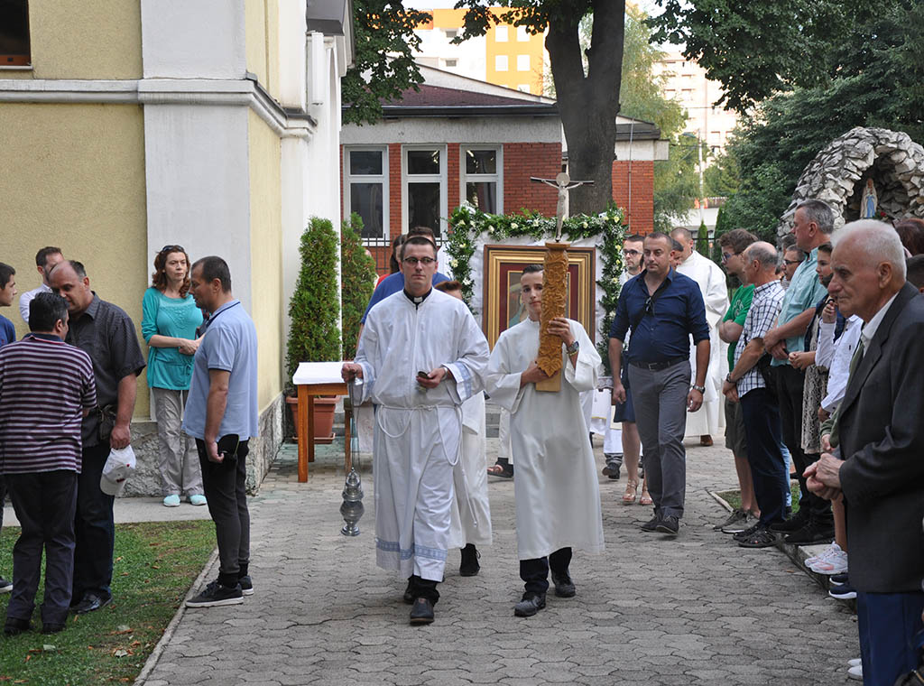 Uz njega u koncelebraciji bilo je sedam svećenika. Nakon uvodne procesije sa zavjetnom Gospinom slikom koju su nosili bračni parovi Ana i Igor Rašo te Kristina i Zoran Čolo okupljeno mnoštvo vjernika pozdravio je župnik vlč. Miroslav Ćavar.