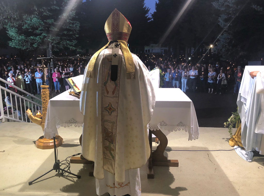 Uslijedila je procesija s upaljenim svijećama od vanjskog oltara do Gospine špilje gdje je vrhbosanski nadbiskup izmolio litanije te podijelio blagoslov okupljenim vjernicima.