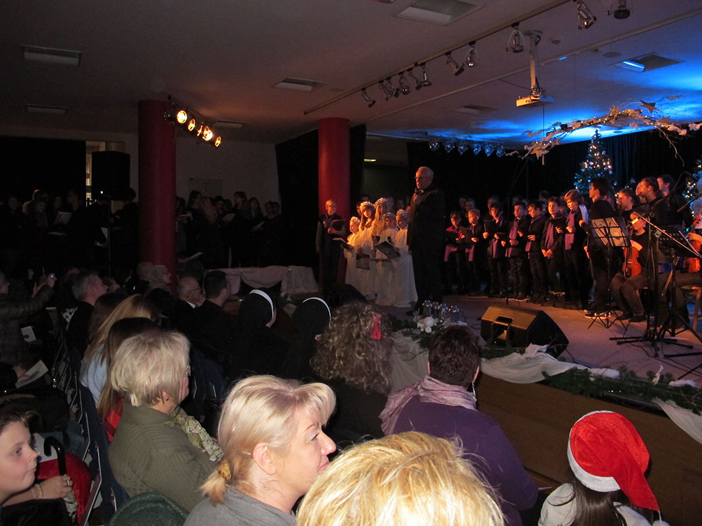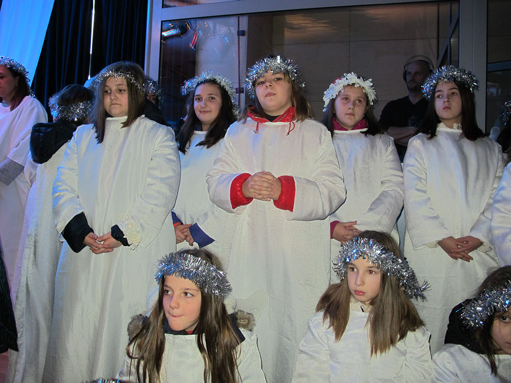 Potom su nazočni uživali u božićnim pjesmama, među kojima su se našle On dolazi da spasi nas, Klanjam ti se Kraljiću, Zdravo budi, Marijo, Plava uspavanka i Svim na zemlji, kao i u prikazu Svete Obitelji.