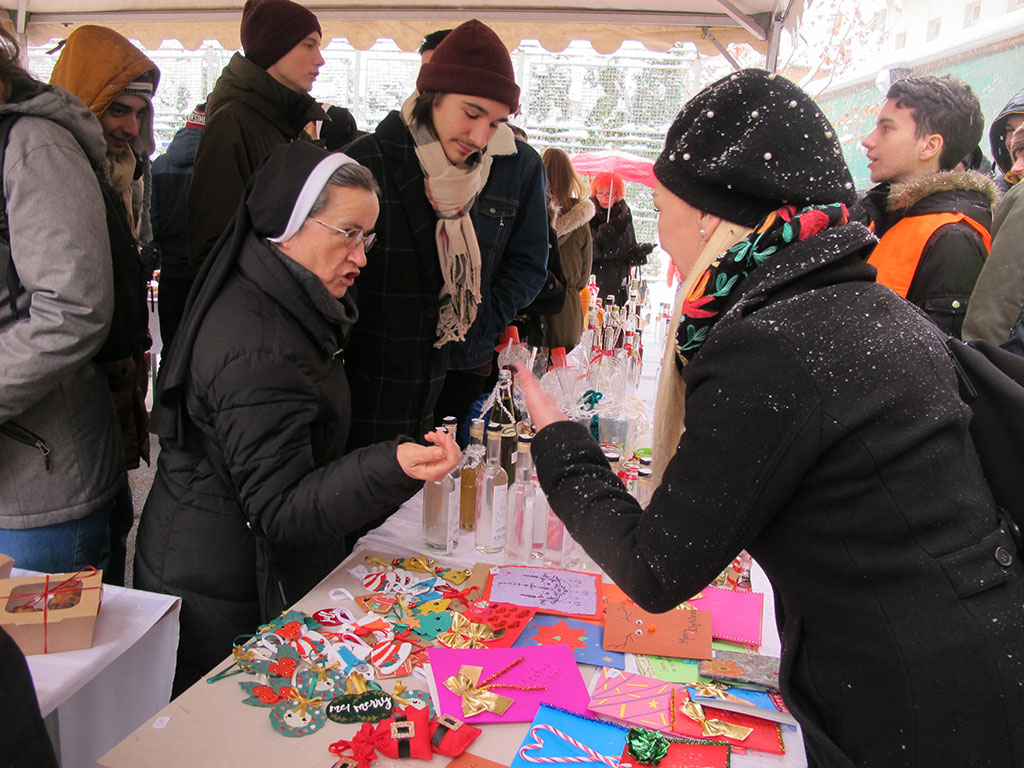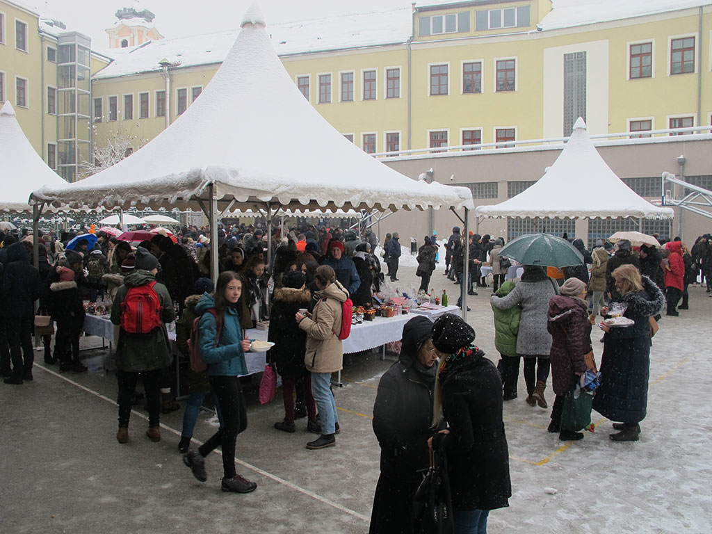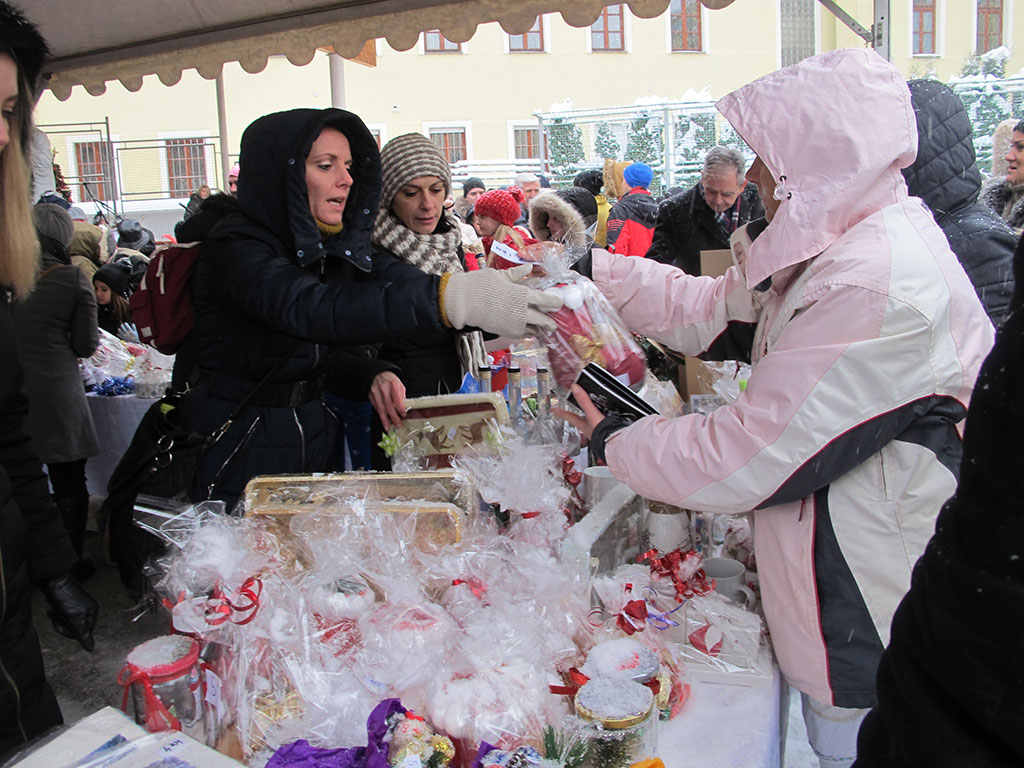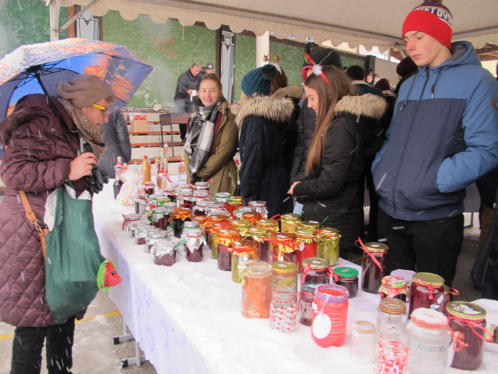 Nakon glazbenih točki okupljeni su u dvorištu škole posjetili štandove bazara koji je i ove godine ponudio djelo vrijednih ruku – božićne kolače, rukotvorine, blagdanske ukrase, čaj, kuhano vino, roštilj... Kušali su jela svojstvena Božiću i unatoč snijegu i hladnoći uživali u ozračju adventa i iščekivanja Isusova rođendana.