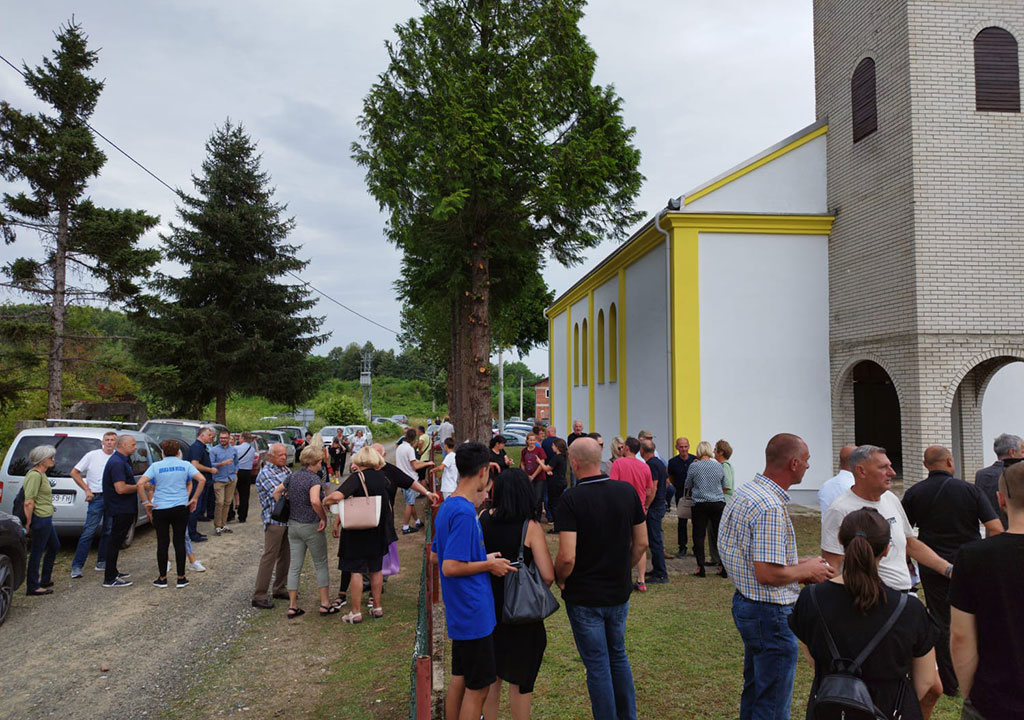 U nedavno temeljito obnovljenoj spomen-crkvi, posvećenoj Sv. apostolima Petru i Pavlu, misnom slavlju prethodilo je zajedničko moljenje Gospine krunice za pobijene župljane, čija su imena ispisana ispod križa na lijevom zidu crkvene lađe.