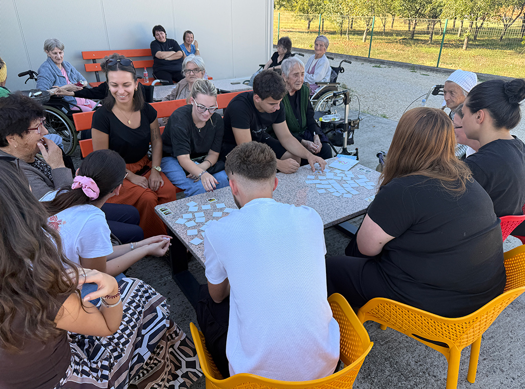 Ova ljetna mini socijalna akcija imala je za cilj pružiti starijim osobama osjećaj pažnje i zajedništva, a mladima prigodu da kroz volonterizam uče o vrijednosti empatije i međugeneracijske solidarnosti. Vrijeme je bilo ispunjeno razgovorima, zajedničkim prisjećanjima, kao i igranjem društvenih igara koje su izmamile osmijehe i potaknule vedru atmosferu među sudionicima.