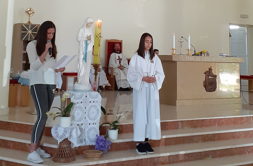 Najmlađi su na kraju pučke mise svim majkama čestitali Majčin dan uz prigodne molitve koje su pročitale Anđela Oršolić i Kristijana Orkić u ime ministranta, prvopričesnika i krizmanika naše župe.