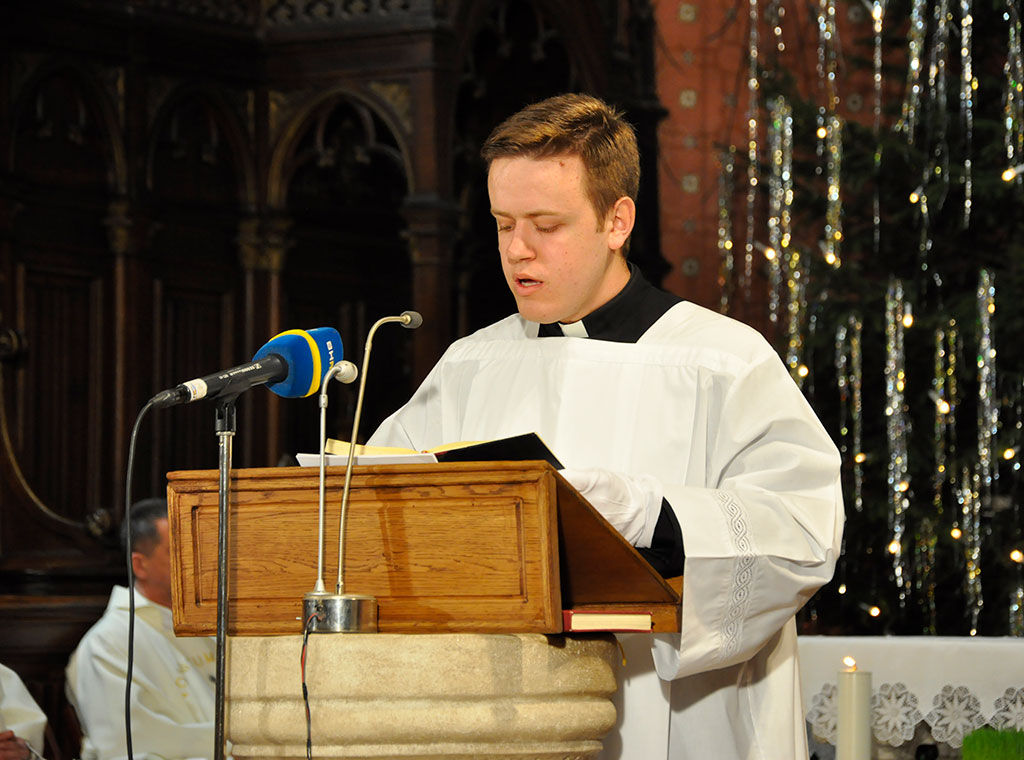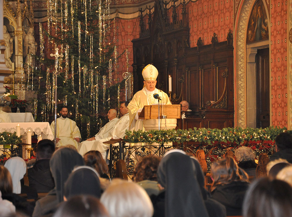 Nakon svetopisamskih čitanja i naviještenog Evanđelja, na početku prigodne propovijedi mons. Vukšić je podsjetio kako je Anđeo Gospodnji, prema izvještaju Lukina evanđelja, pastirima donio radosnu vijest da se rodio Spasitelj – Krist i Gospodin i naznačio da će ga naći kao novorođenče povijeno gdje leži u jaslama. „Nasljedujući primjer anđela i sudjelujući u njihovoj radosti, od svoga početka kroz svih 20 stoljeća, zajednica vjernika dosljedno ponavlja iste riječi svaki put kad se okuplja na svečanu euharistijsku molitvu. Pridružujući se toj sjajnoj tradiciji Crkve i sadašnjoj braći i sestrama po cijelomu svijetu, to smo učinili i mi prije nekoliko trenutaka. Još jednom smo izrazili svoju radost ponavljajući riječi anđela: 'Slava Bogu na visini! I na zemlji mir ljudima dobre volje.' Ponovili smo te riječi prije svega zato da se sa zahvalnošću poklonimo svome Stvoritelju i Spasitelju, ali i da još jednom, zajedno sa svim nebeskim silama, ponovimo molitvu: Neka slavni Bog dadne te bude mir među ljudima“, kazao je mons. Tomo, naglasivši: „Jer, dijete nam se rodilo, sina dobismo; na plećima mu je vlast. Ime mu je: Savjetnik divni, Bog silni, Otac vječni, Knez mironosni“.