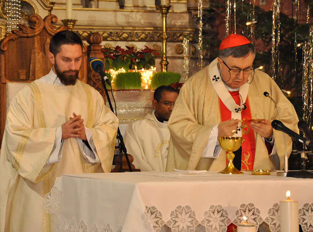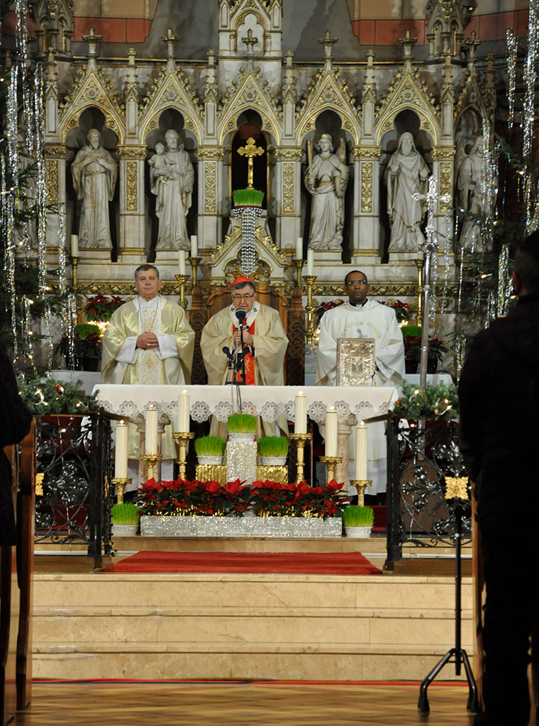 Nadbiskup Puljić najprije je pozdravio nazočne svećenike, redovnice, bogoslove i vjernike te prenio brojne čestitke raznih osoba koje su ih uputile preko njega. „Koristim priliku pozvati vas da donesemo sve one koji trebaju naše molitve, da za njih noćas molimo kako bi im novorođeni Kralj udijelio nutarnju utjehu, snagu i istinski nadu života“, poručio je kardinal.
