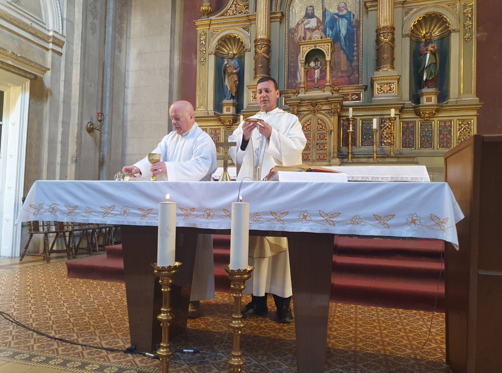 Euharistiju je predslavio kancelar Vojnog ordinarijata u BiH (VOBiH) i župnik u Goraždu vlč. Josip Tadic u koncelebraciji s generalnim vikarom VOBiH-a i župnikom u Tarčinu mons. Željkom Čuturićem.