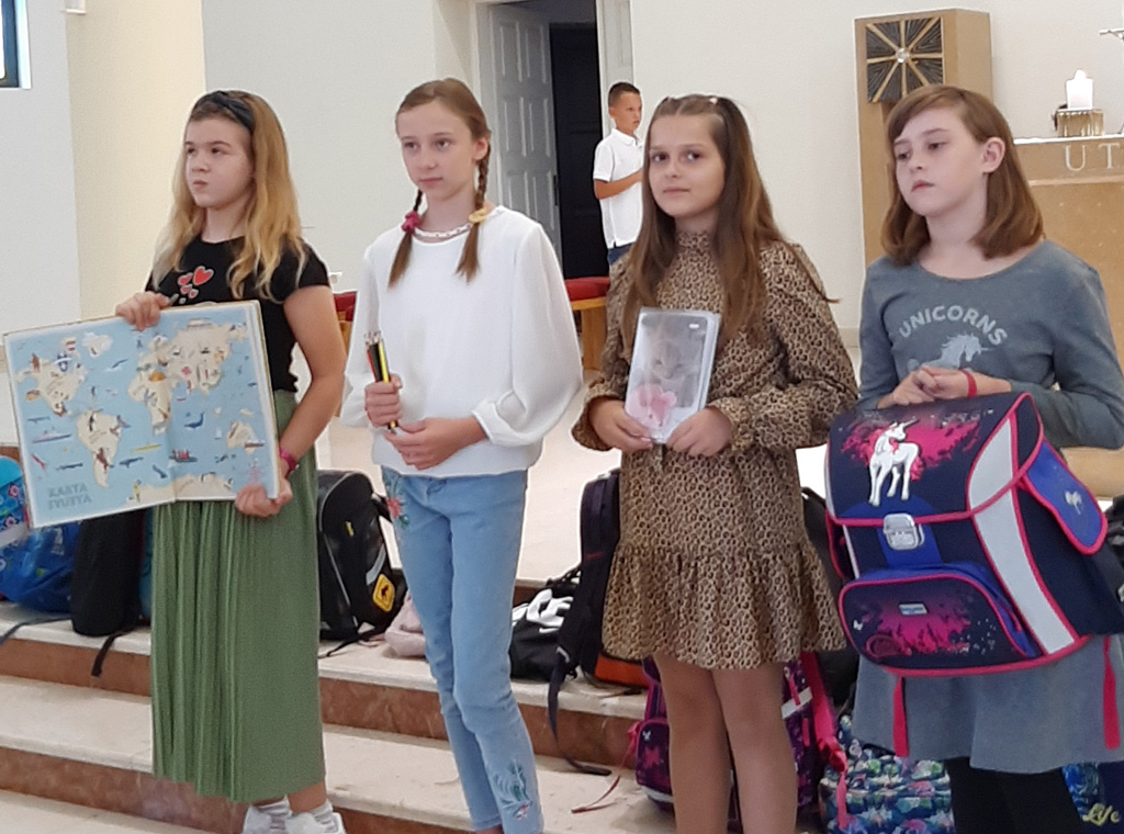 Za vrijeme mise djeca su pred oltar donijela svoje darove: atlas, bojice, bilježnice, torbu, sat i križ te uputili svoje molitve Bogu na jednostavan i prigodan način.