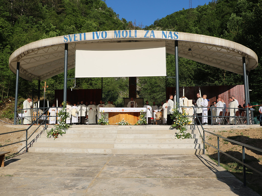 Proslava Sv. Ive započela je procesijskim iznošenjem svetčeva kipa. Potom je tradicionalno euharistiju predslavio vrhbosanski nadbiskup, uz koncelebraciju 20-ak svećenika među kojima je bio i provincijal Franjevačke Bosne Srebrene fra Zdravko Dadić te upravitelj svetišta i župnik fra Filip Karadža, koji je na početku pozdravio pristigle vjernike i hodočasnike.