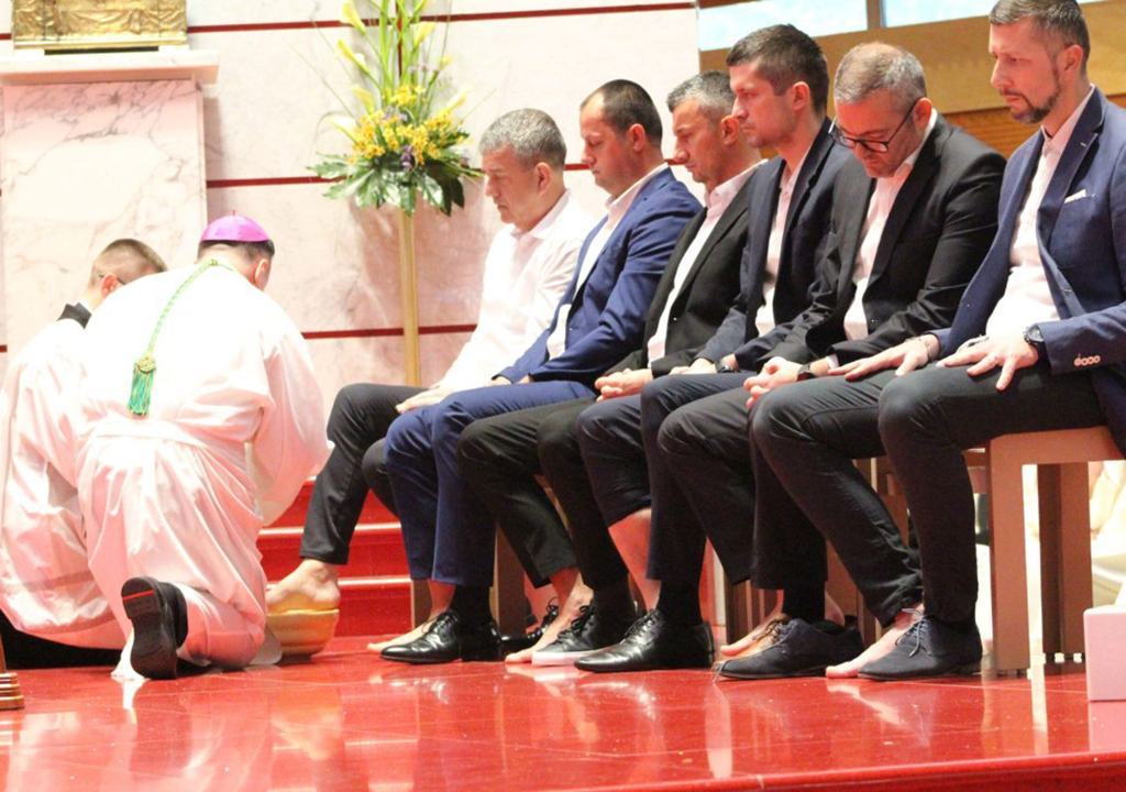 Zatim se obratio nazočnim „apostolima“: „Vi, dragi ‘apostoli’ kojima ćemo večeras oprati noge, predstavljate cijeli narod Božji. U vama Isus pere noge svakome od nas. Neka ovaj čin ne bude samo gesta, nego poziv da svi budemo oni koji će ponizno služiti drugima. Isus nam pere noge ne zato što smo savršeni, nego zato što smo ljubljeni. On zna naše slabosti, kao što je znao Judinu i Petrovu, ali ne prestaje ljubiti. I poziva sve nas da ljubimo druge ne zato što zaslužuju, nego jer smo na to pozvani. Biti kršćanin znači biti onaj koji služi. Možda nećemo doslovno prati noge drugima, ali možemo biti oni koji se ne boje kleknuti pred čovjeka, koji se ne boje ući u tuđu patnju, pomoći, saslušati, biti prisutni.“
