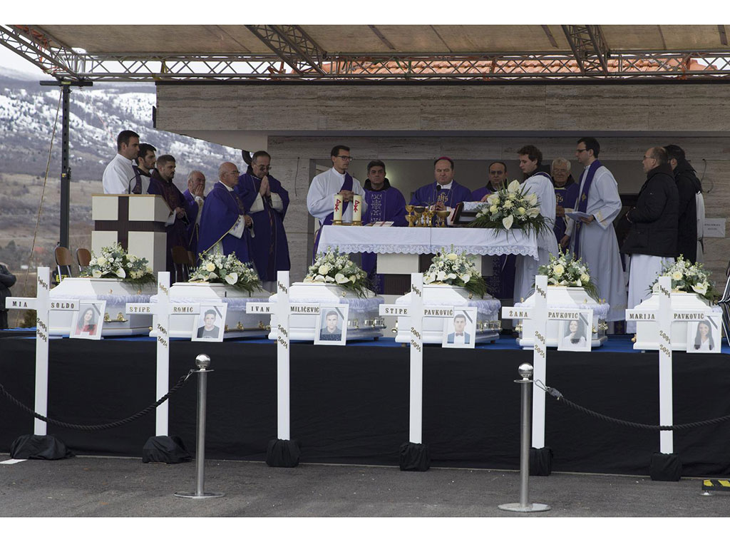 U ponedjeljak 4. siječnja misu i sprovodne obrede za šestero djevojaka i mladića, tragično stradalih na Tribistovu, ispred crkve Sv. Ivana Krstitelja u Rakitnu predvodio je mostarsko-duvanjski biskup i apostolski upravitelj trebinjsko-mrkanski Petar Palić.