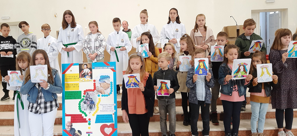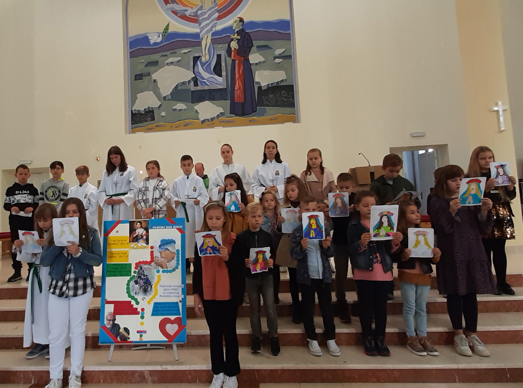 Tjedan duhovne priprave za Svjetski dan misija završen je svečanim euharistijskim slavljem i prigodnim programom 23. listopada. Djeca su i ove godine na svoj način obilježila Misijsku nedjelju. Razmišljajući o misijama, misionarima te o njihovom poslanju i djelovanju među najpotrebnijima, kroz mali scenski prikaz pred pučku misu pokazali za čim sve gladuju djeca u misijama. Raspjevani dječji župni zbor pod ravnanjem prof. Magdalene Mišković i orguljašice Magdalene Arlović otpjevavši Misijsku himnu najavio je euharistijsko slavlje, koje je predslavio župnik fra Bono Kovačević. Umjesto klasične propovijedi nazočni su čuli homiliju za Misijsku nedjelju don Danka Litrića.