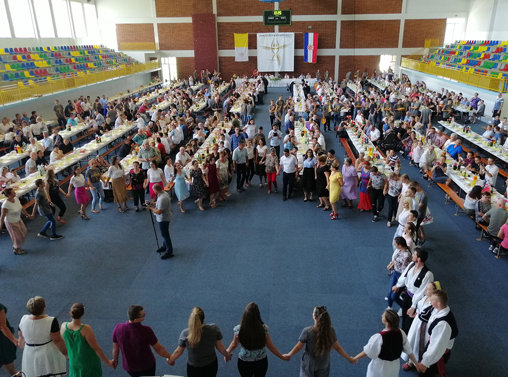Nakon svete mise druženje je nastavljeno uz obiteljski stol u sportskoj dvorani Katoličkog školskog centra Don Bosco uz zvuke duhovnoga i narodnoga melosa te neizostavno kolo i šargije.