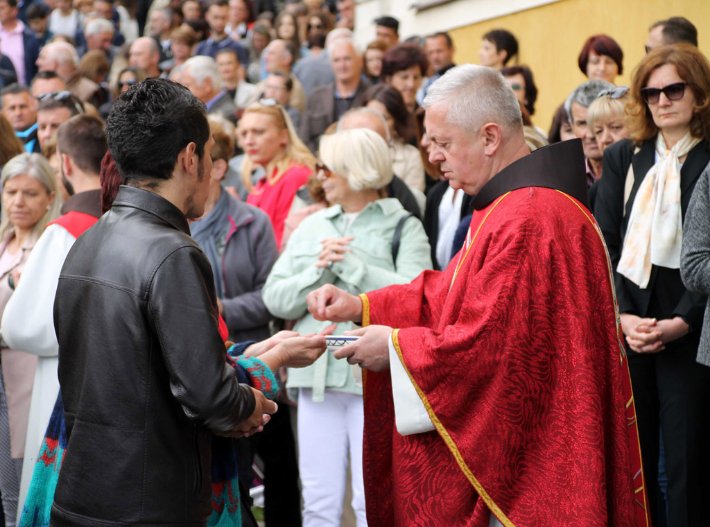 "Kada Isus dođe on hrabri apostole i daje im podršku. Na Duhove apostoli dobijaju snagu s neba, postaju novi ljudi, otključavaju vrata i idu među ljude vani koji su možda i opasni. Važna pouka glasi dok apostoli nisu otvorili vrata i krenuli među ljude nije se Crkva povećala. Moramo se otvoriti prema drugima jer dok smo zaključani ostajemo siromašni i odijeljeni od drugih", istaknuo je fra Mato, između ostaloga, u propovijedi.