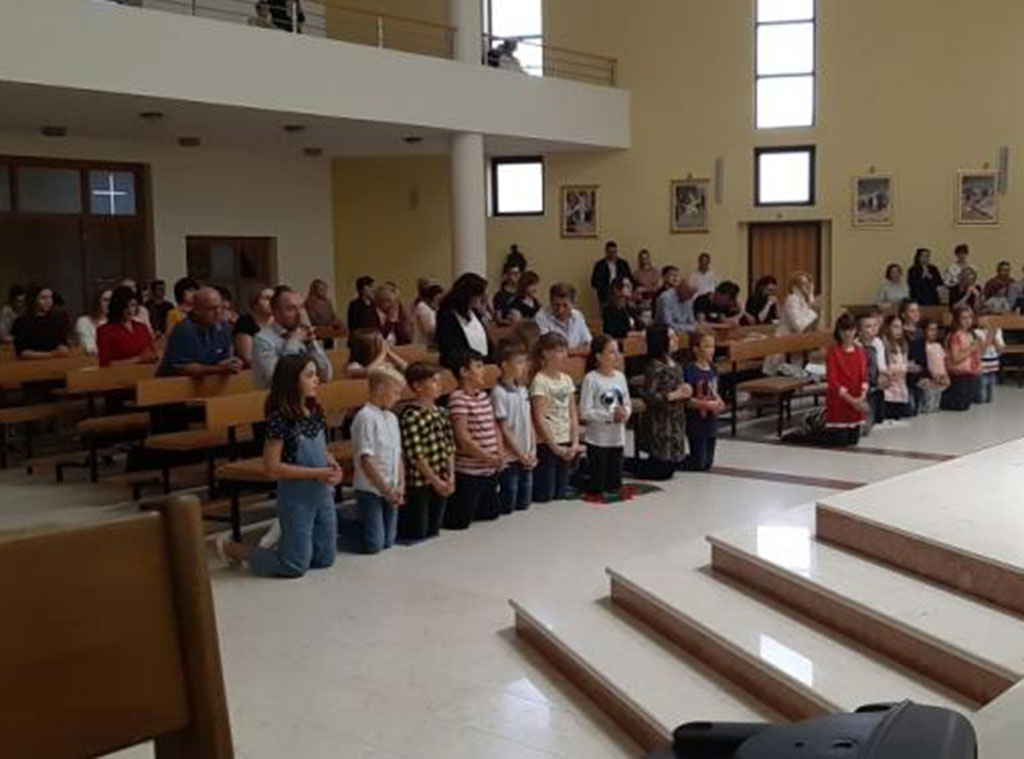 Večernju svetu misu pod kojom je predstavljeno 19 kandidata prvopričesnika, predvodio je župnik fra Bono Kovačević, koji je ujedno i njihov kateheta. U prigodnoj homiliji istaknuo je da roditelji trebaju djeci biti primjer kako se svjedoči i živi vjera. Međutim, dodao je i kako se često zna dogoditi da djeca budu roditeljima primjer svjedočenja i življenja vjere, a roditelji nekako izostanu po strani zapostavljajući svoj dolazak na misna slavlja.