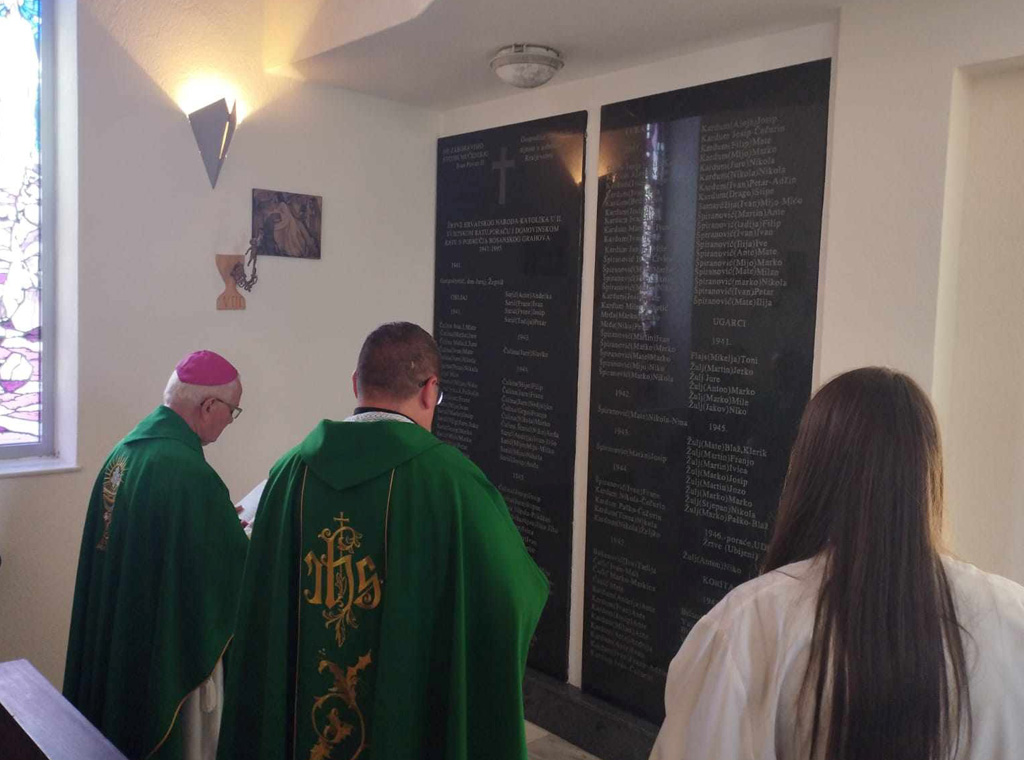 Na kraju misnog slavlja biskup je izmolio molitvu opijela za župnika Gospodnetića i sve stradale župljane pred starim spomen-pločama u dnu župne crkve, javlja TABB.