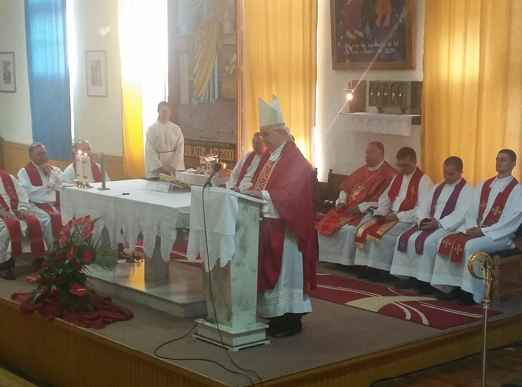 Koncelebriranu sv. misu predslavio je banjolučki biskup mons. Franjo Komarica u zajedništvu sa svojim pomoćnim biskupom mons. Markom Semrenom i devetoricom svećenika.
