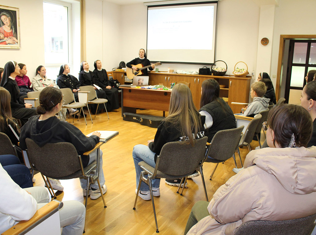 Susret je započeo molitvom i pjesmom slavljenja koju je animirala s. Vesna Bošnjak koje je potom održala predavanje na temu poziva, a na poseban način mladima je približila lik Marije Magdalene – prve glasnice Isusova uskrsnuća.