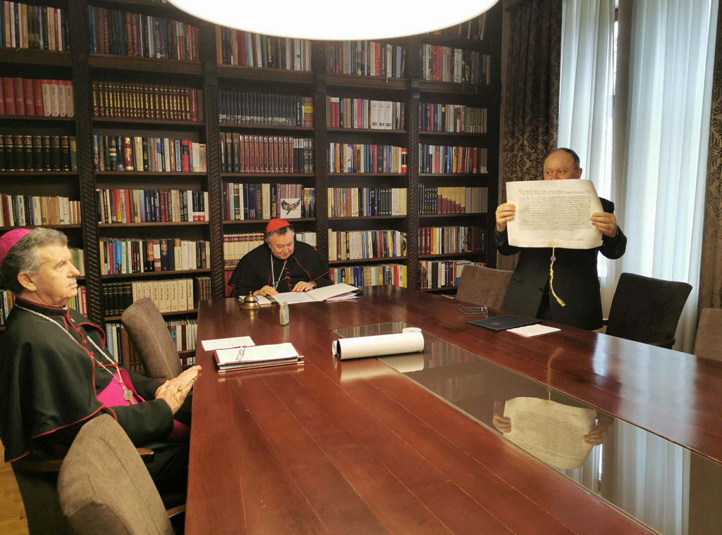 Potom je mons. Jagodzinski pročitao bulu imenovanja na latinskom, a kancelar preč. Mladen Kalfić na hrvatskom.