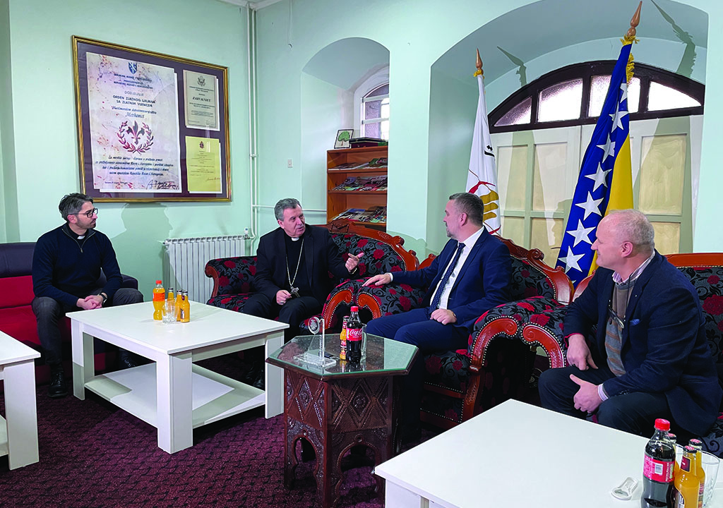 Najprije je u pratnji ekonoma Vrhbosanske nadbiskupije preč. Vladimira Pranjića i predstojnika Ureda za odnose s javnošću vlč. Dražena Kusture posjetio Muslimansko dobrotvorno društvo Merhamet gdje se susreo s predsjednikom društva gosp. Kenanom Vrbanjcem i njegovim suradnicima.